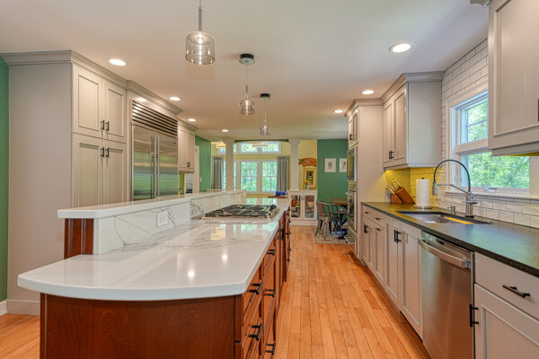 LOCATION, PRIVACY & SPACIOUS ROOMS! Meticulously Maintained, Thoughtfully Designed, Custom Built Center Entrance Colonial located in a much sought after neighborhood, with a modern open floor plan. The HUB of this home is the NEW Chef’s Kitchen featuring top-of-the line Sub Zero, Wolf & Thermador SS appliances, Custom Cabinets & an oversized granite island w leathered Granite & Quartz countertops, plus a Butlers Pantry complete w 2 GE Café drawer & Café Beverage refrigerators, Prep sink, & wine storage. An adjoining Breakfast Rm, w built-in banquet seating, is open to an over-sized vaulted ceiling Family Rm with wood burning FP. Additionally there is an entertainment-sized Formal LR w FP and a banquet-sized DR w extensive moldings. A Powder Rm, Pantry & Laundry completes the first level. The 2nd level has a Primary BR w walk-in closet & Remodeled en-suite bath. Additionally, there are 3 generously sized BRs and a remodeled Main Bath. Finished LL Office, Fresh paint. REMARKABLE SETTING