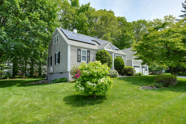 4-bedroom, 2-bath Cape nestled on a sunny corner lot in a prime Marlborough location. 2 bedrooms & a full bath on each level, the layout is perfect for multi-generational living, guest space, or remote work. Kitchen fully renovated in 2021 with Thomasville cabinetry, quartz countertops, a tile backsplash & a new gas range, ideal for everyday living & entertaining. Both bathrooms have been refreshed, leased solar panels. Recent updates include: Furnace (2014), A/C unit (2014), Blown-in insulation (2013), Hot water heater (2022), Roof & exterior paint (2009), Detached garage with second-story storage (2009), Driveway repaved (2024). Central heating & cooling with natural gas, Hardwood & vinyl flooring, Unfinished walk-out basement w/utility sink, Washer/dryer. 3-season porch w/ operable windows, 2-car, 2-story garage, upper level offers flexible use a home gym, hobby area, guest space, or storage. Near schools, hospital, AART Rail Trail & highways. Roof: Asphalt, Gable or hip.