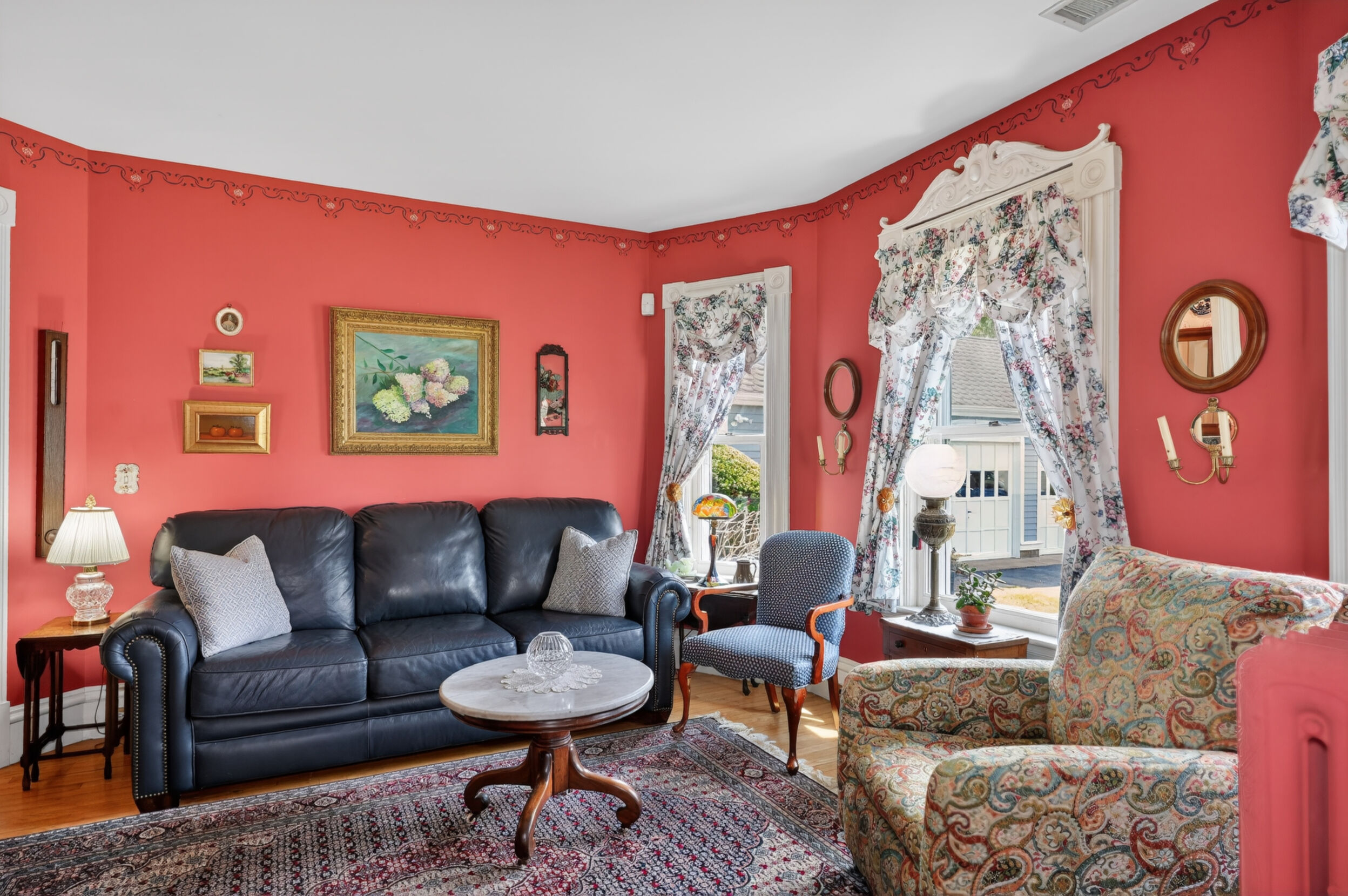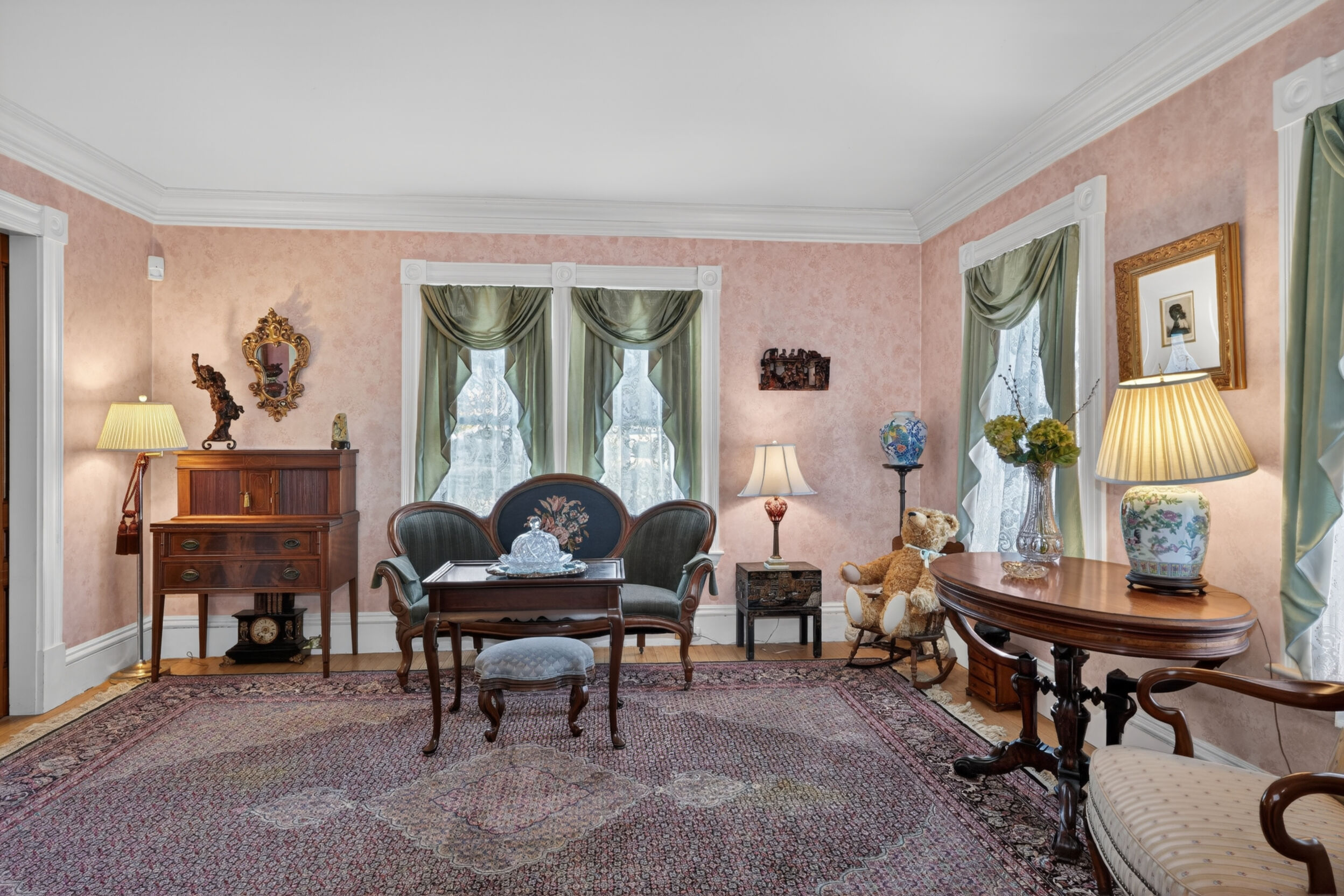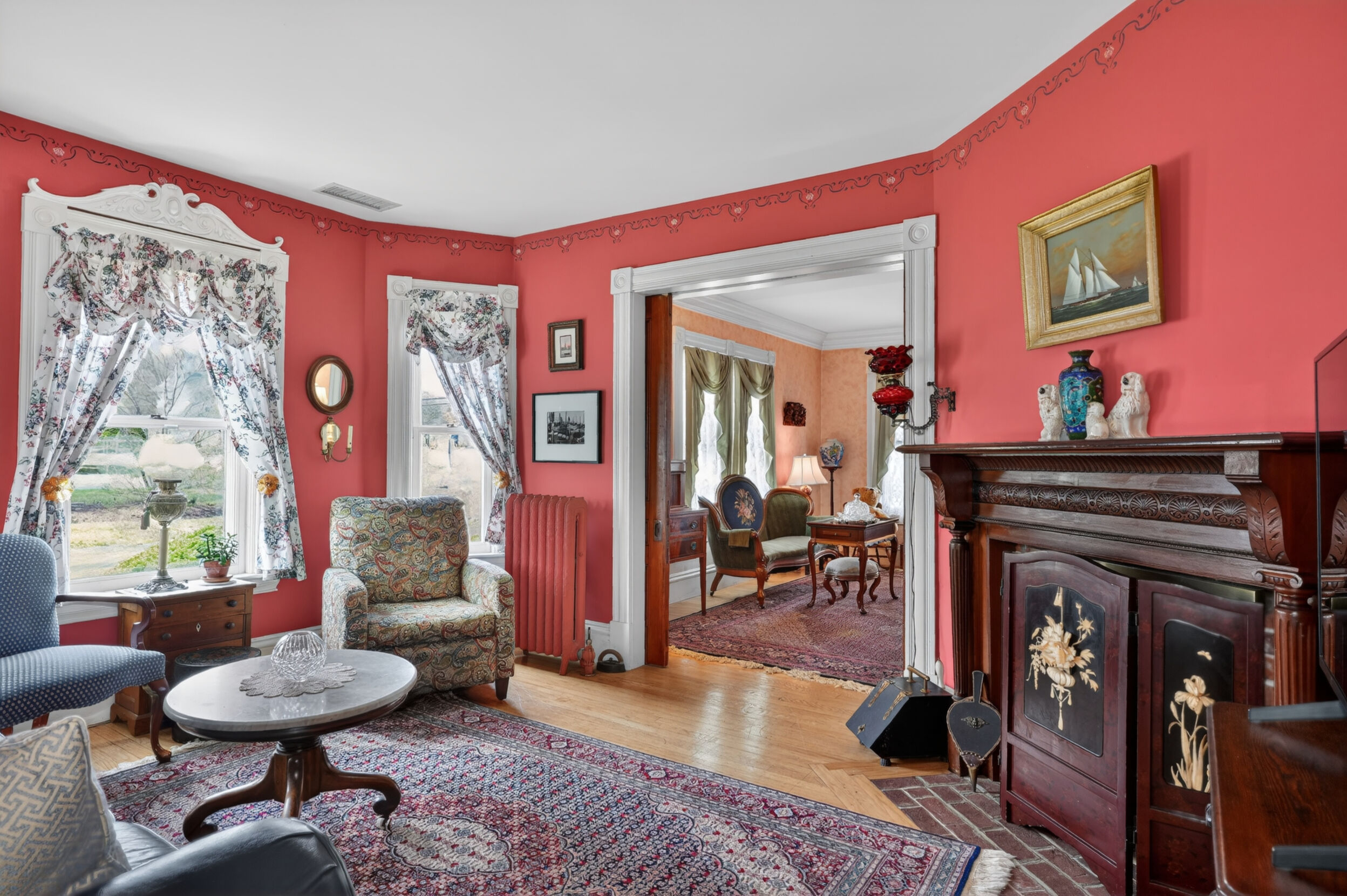 Edward H. Smith House Lovingly maintained by the current owner, this distinguished Colonial blends timeless elegance with thoughtful modern updates. From the moment you arrive, the home's classic architecture & gorgeous, park-like grounds make a lasting impression. Step into a grand living room with decorative moldings—perfect for entertaining—or unwind in the cozy den featuring a fireplace. The spacious eat-in kitchen offers granite countertops, newer appliances, & a charming bump-out ideal for casual dining. A formal dining room with custom moldings & a built-in curio cabinet adds character & functionality. Upstairs, you'll find four well-proportioned bedrooms & a full bath, along with two staircases that enhance the home's historic appeal. Two-car detached garage provides ample parking & storage. Don’t miss the opportunity to own this beautifully preserved & thoughtfully updated classic home, perfectly situated in a prime location! See list of upgrades.