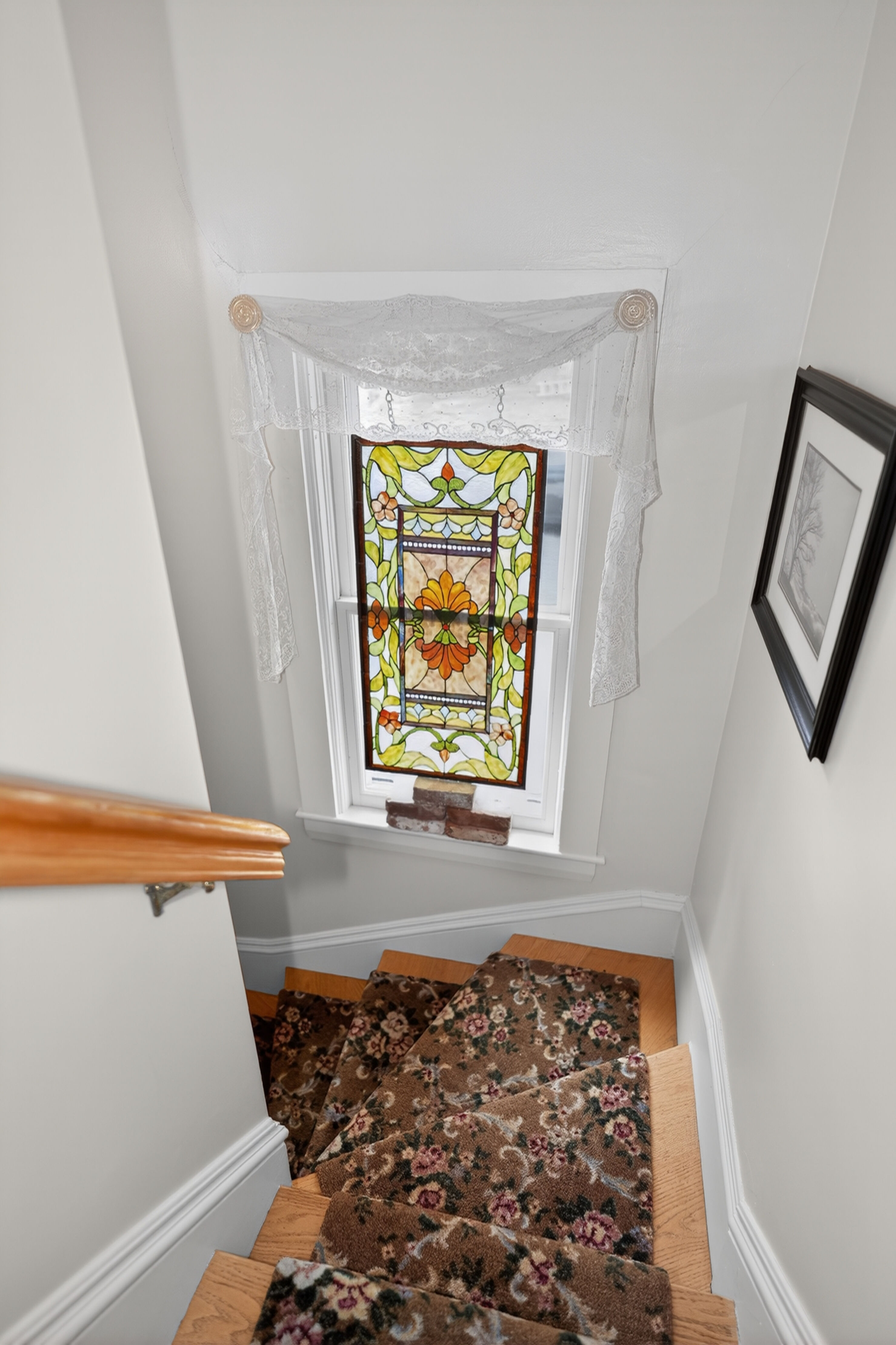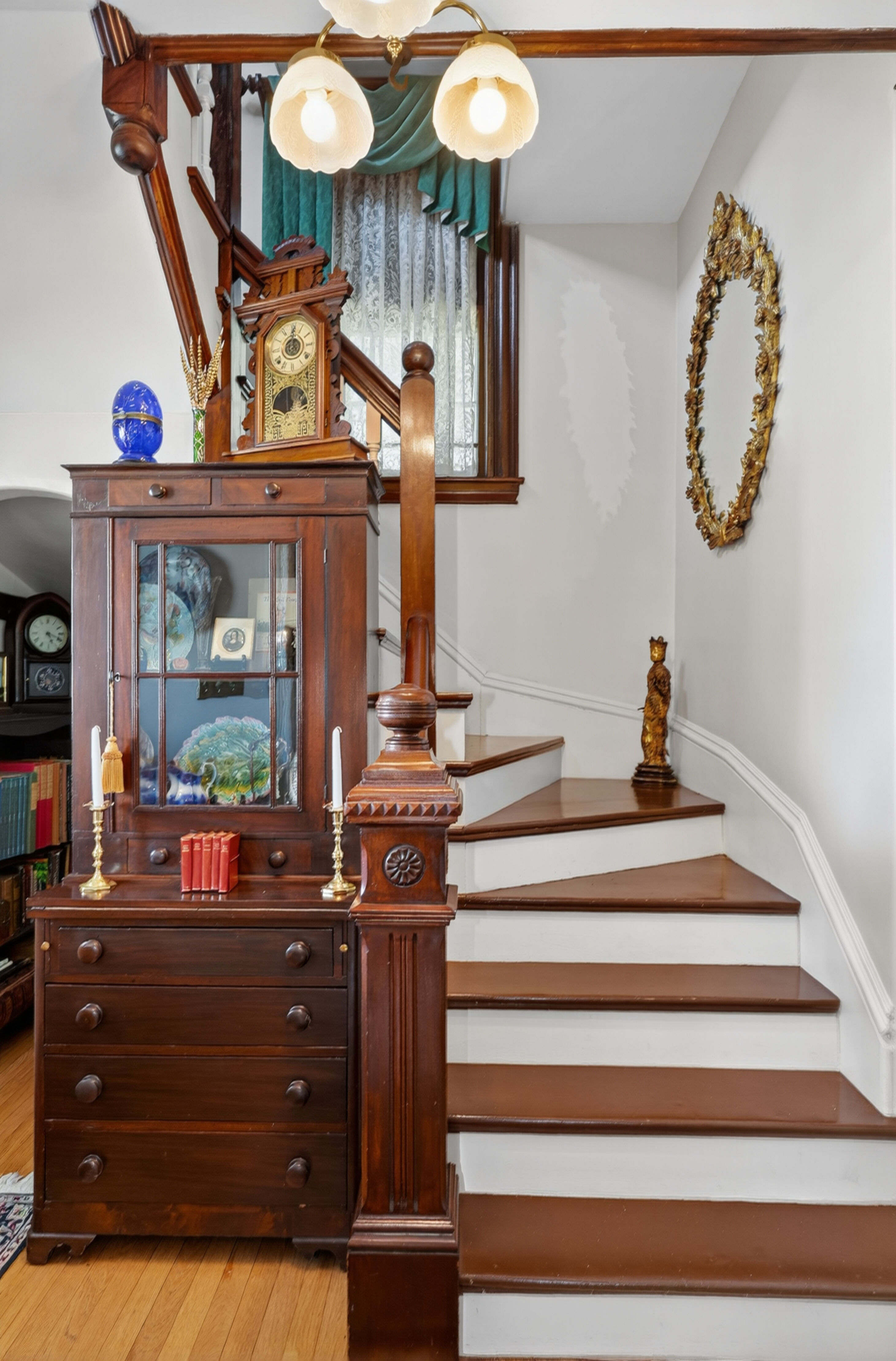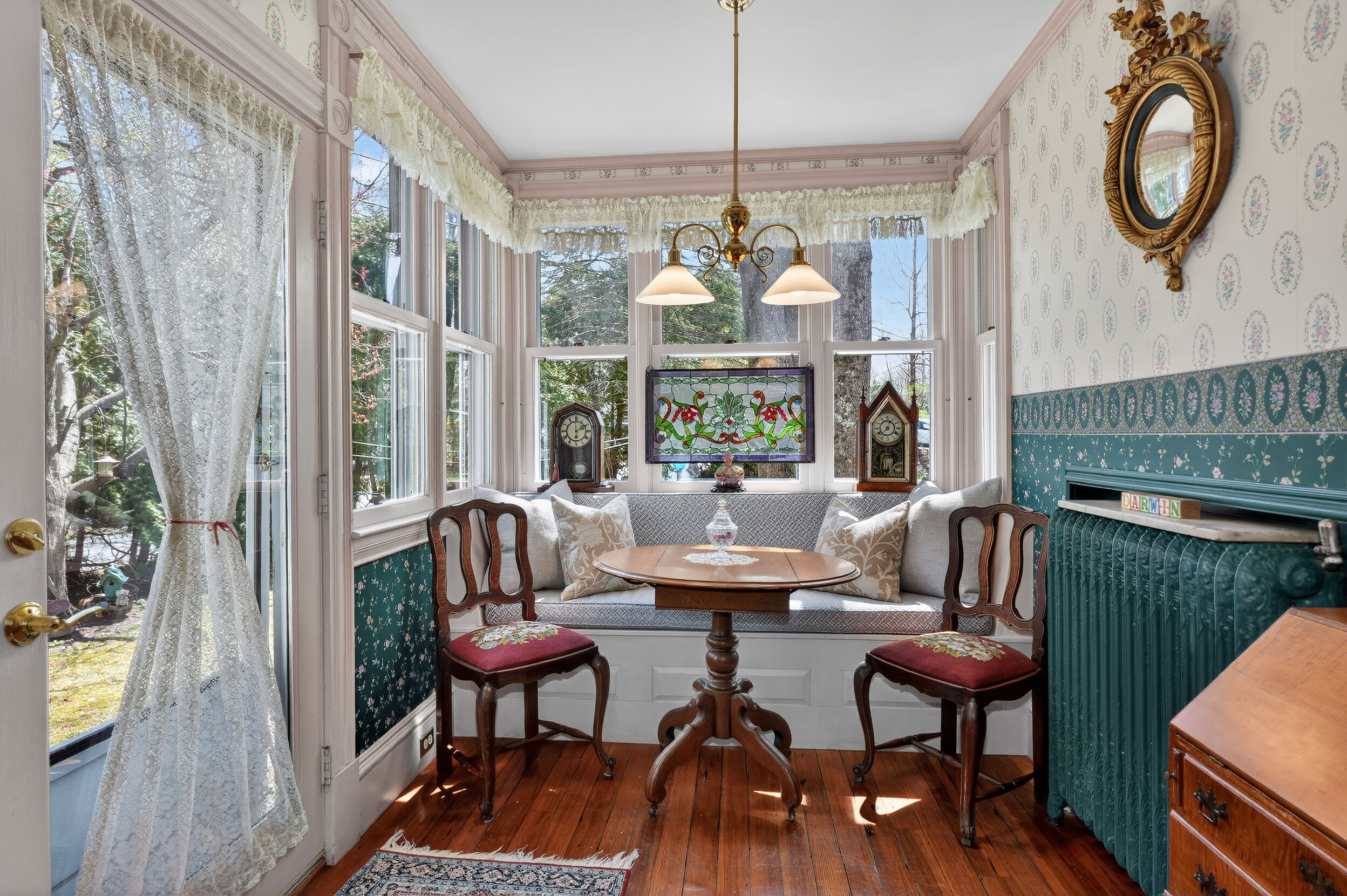 Edward H. Smith House Lovingly maintained by the current owner, this distinguished Colonial blends timeless elegance with thoughtful modern updates. From the moment you arrive, the home's classic architecture & gorgeous, park-like grounds make a lasting impression. Step into a grand living room with decorative moldings—perfect for entertaining—or unwind in the cozy den featuring a fireplace. The spacious eat-in kitchen offers granite countertops, newer appliances, & a charming bump-out ideal for casual dining. A formal dining room with custom moldings & a built-in curio cabinet adds character & functionality. Upstairs, you'll find four well-proportioned bedrooms & a full bath, along with two staircases that enhance the home's historic appeal. Two-car detached garage provides ample parking & storage. Don’t miss the opportunity to own this beautifully preserved & thoughtfully updated classic home, perfectly situated in a prime location! See list of upgrades.