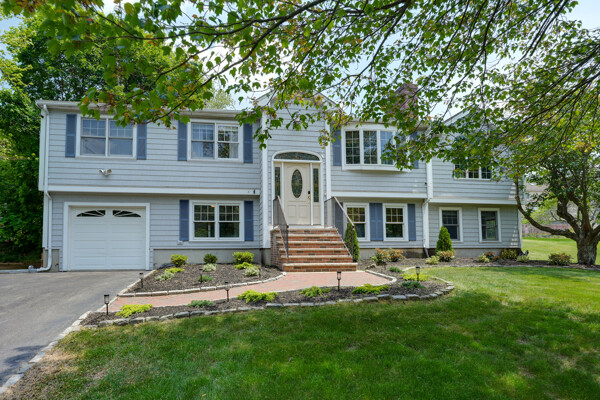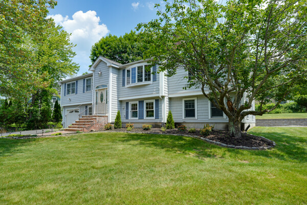 Expanded and tastefully renovated 5 bed/3 BA split level offering a wonderfully open concept design in a prime location at the end of a cul-de-sac! The main level offers 4 bedrooms including a primary suite complete with a full bath with a jetted soaking tub, steam shower, second laundry, walk-in closet, and additional storage. Beautiful cherry and granite kitchen with custom cabinets, copious cabinet and storage space, SS appliances including a professional hood vent, double oven, spacious living room w/bow window, fireplace, main bath plus 3 additional bedrooms. Hardwood flooring, central air, lots of windows and recessed lights. The lower level offers an in-law/au-pair suite 5th bedroom, living/family room, fireplace, bath w/laundry and recreation room w/walk-out and attached garage. World-class Lahey Health, the mall, 3rd Ave and the district at your fingertips coupled with this quiet, ideally located side street make this a must see. Too much to list-see attached feature sheet.
