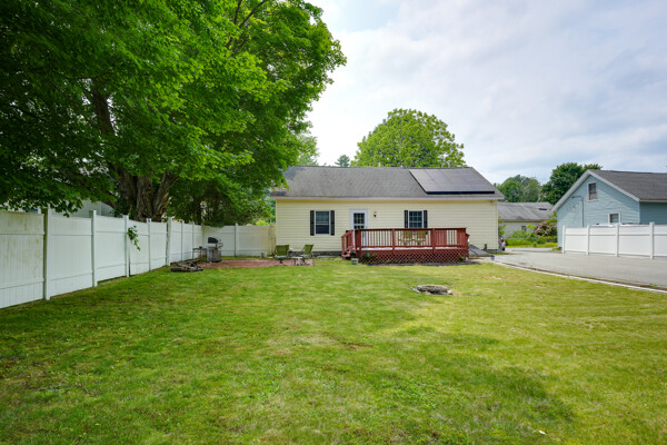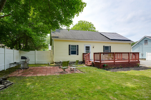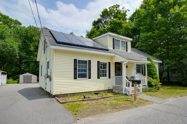 Welcome to this Antique in historic Sutton! Owners are sorry to leave but are relocating out of state. This remodeled Cape enjoys four bedrooms. Two on the first floor and two on the second. There are also two full baths, one on the first and second floors. The remodel kitchen with Maple cabinets and stainless steel appliances leads to the open area for dining and living room. One first floor bedroom is being used as an office now. There is a good size wooden deck, patio area and mostly fenced in back yard.Nice size shed and paved driveway for 4 to 5 cars. In 2022 these owners had solar panels installed to make the utilities very affordable! This lease can easily be transferred to the new owner. This is a dead end street with wooded trails to enjoy. The property across the street has recently been purchased and we have been told will have a new duplex built. Buyers and their agent can investigate at the Town Hall.