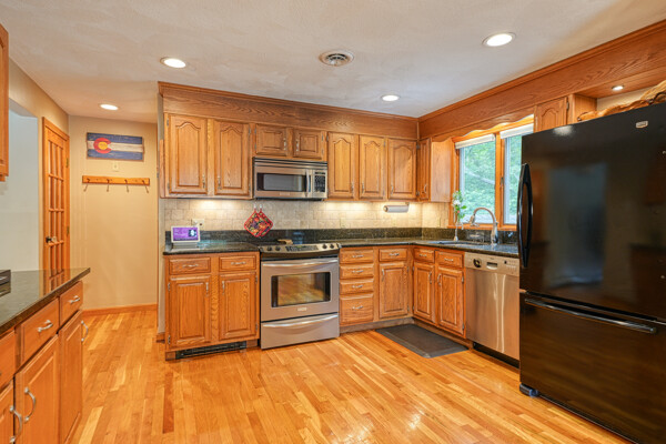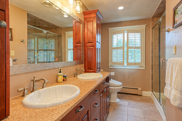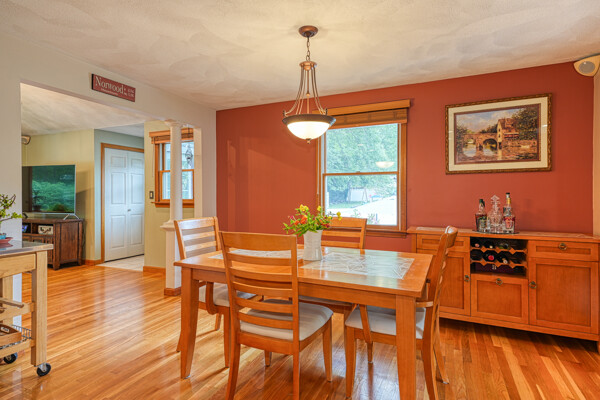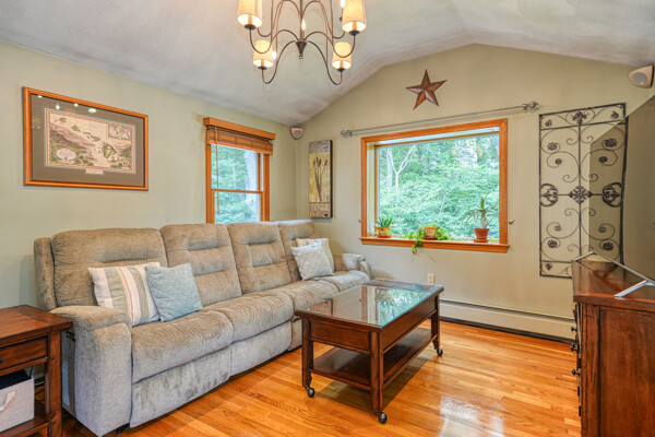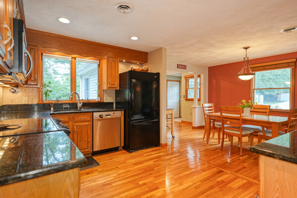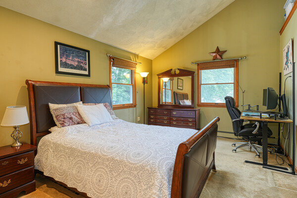 Nestled on a picturesque, lush, professionally landscaped parcel is this beautifully maintained, move-in ready Condex with an open floor plan, great for entertaining. The kitchen has wood cabinetry for ample storage and granite counters which opens to the dining room area, family room and a lovely living room with a wood burning fireplace. There are gleaming hardwood floors on this level with carpeting in the LR, recessed lighting and plenty of windows that make this such a charming home. Upstairs is the spacious primary bedroom, with a tiled bath, ceiling fan and great closet space; the guest room with a skylight, ceiling fan, storage and a full bath. The fully finished lower level is perfect for family or friends with a bonus room, half bath, bar area and staircase to the back yard as well as the utility room. Come and relax among the beautiful mature trees, gorgeous flowers and shrubs surrounding the large patio in your private, fenced-in rear yard. Prime location and so much more!