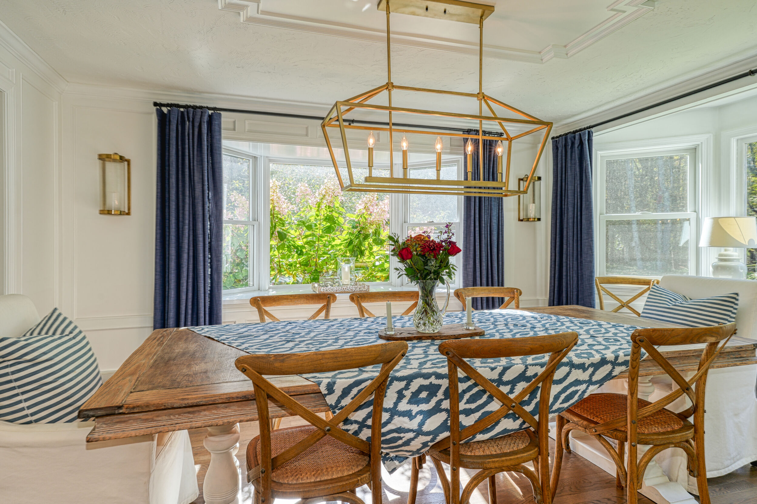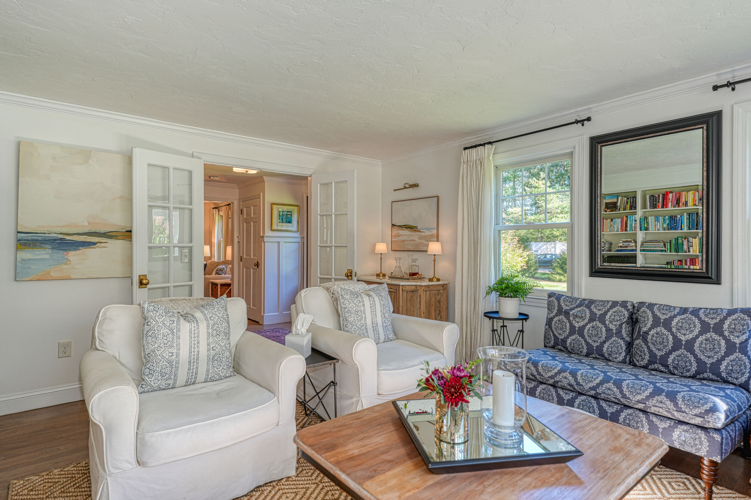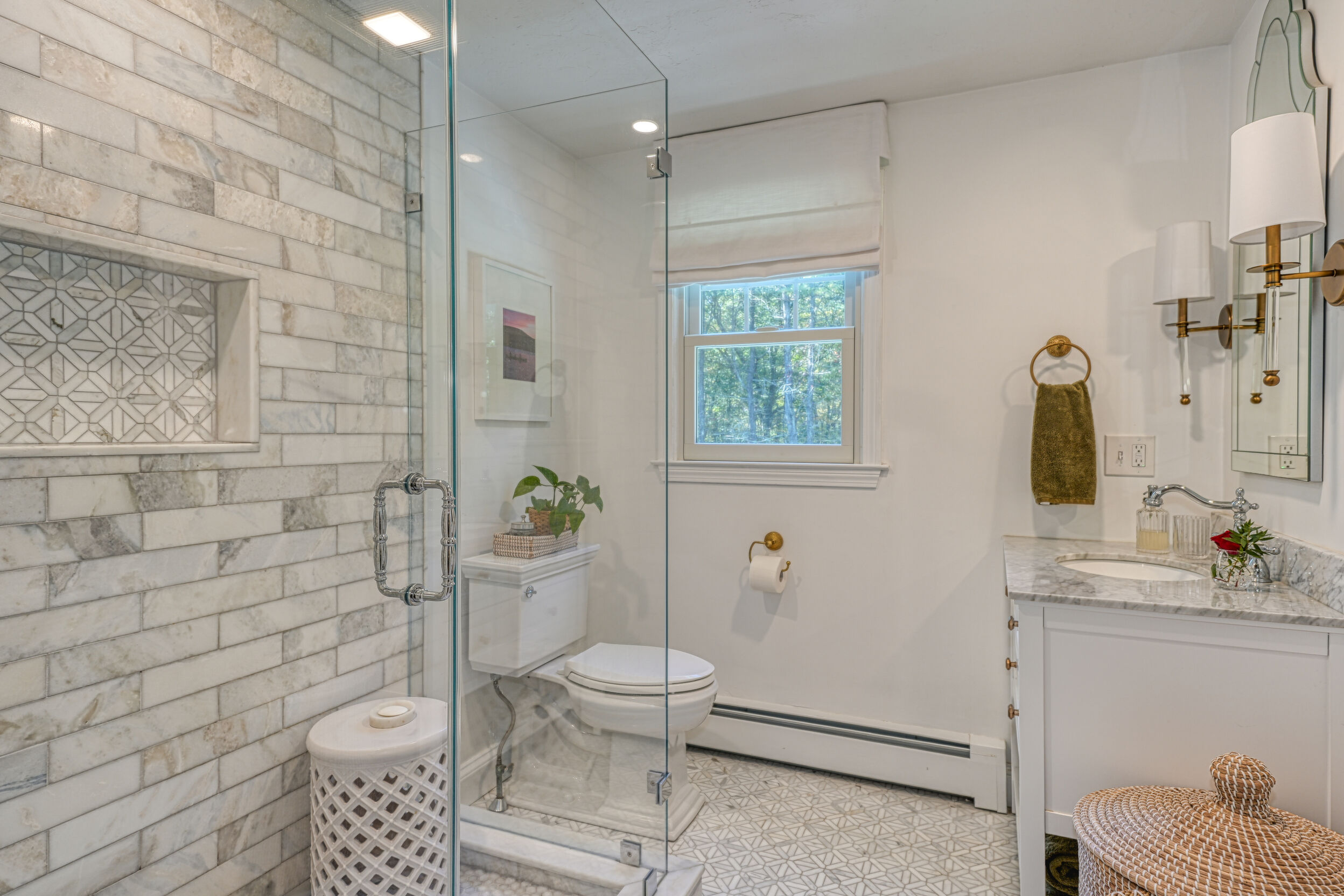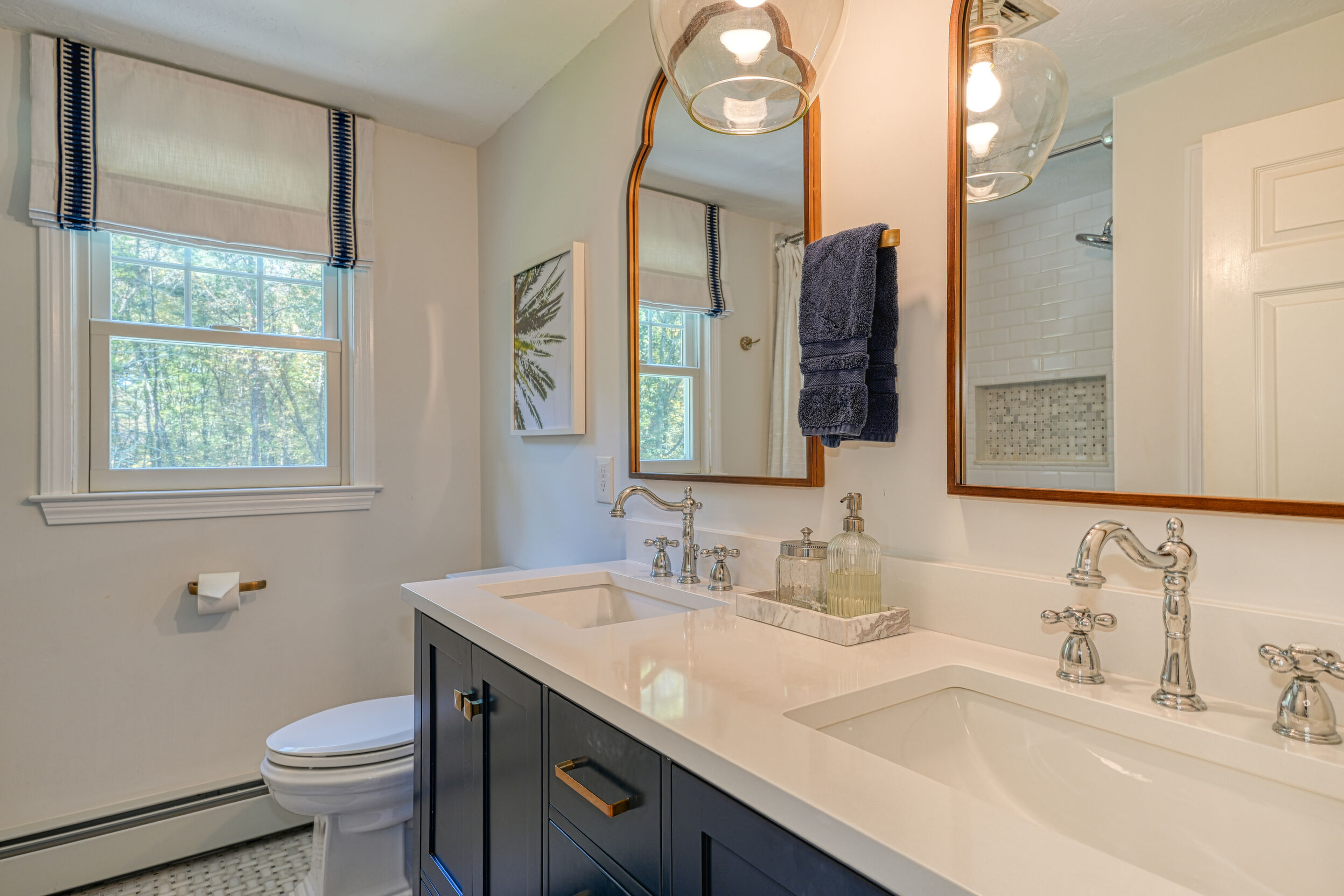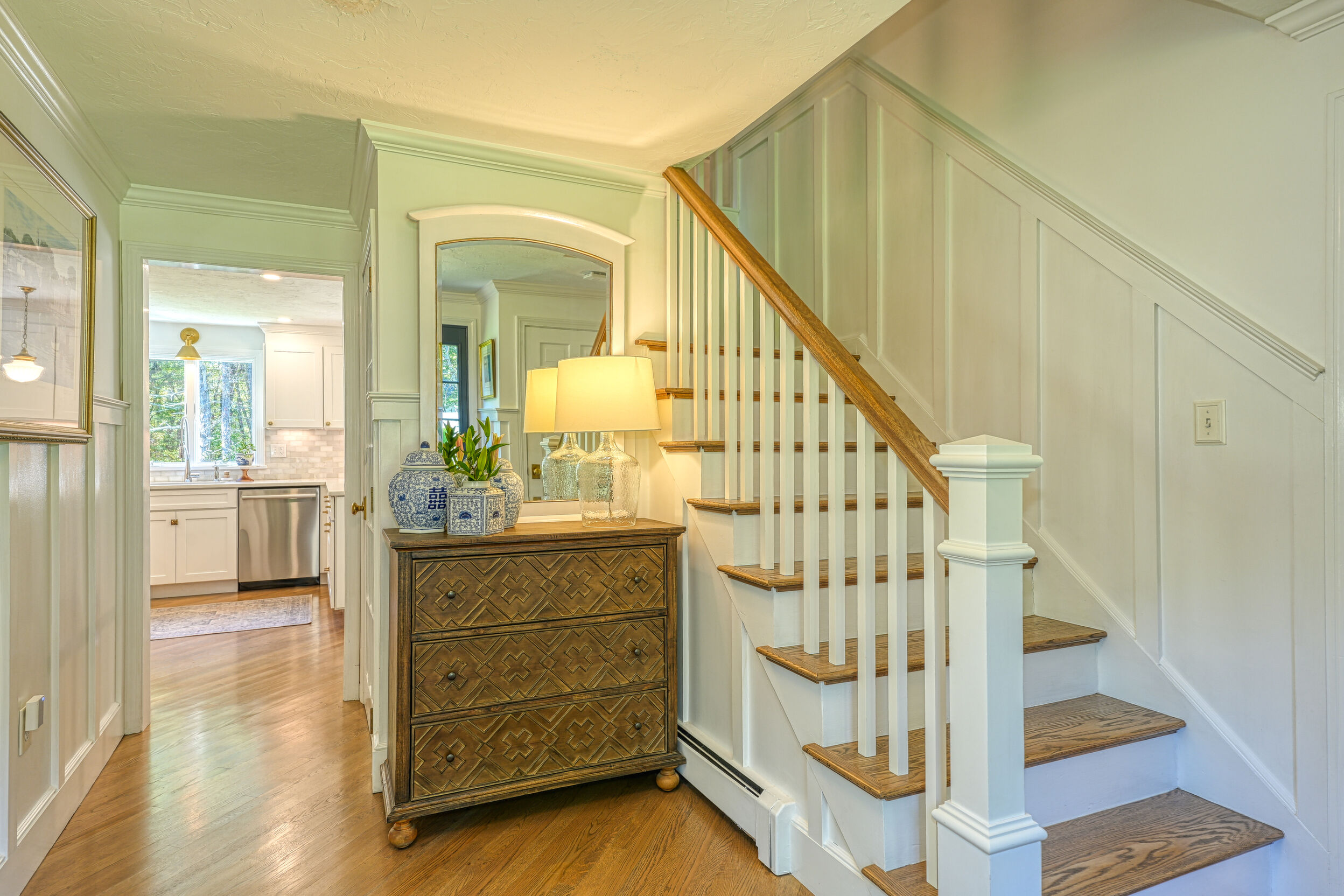 Beautifully updated and meticulously maintained Colonial offering a spacious and functional layout. The remodeled kitchen features sleek quartz countertops, ample cabinetry, and newer stainless steel appliances. Enjoy a sun-filled family room with a cozy fireplace, a gracious living room with custom built-in shelving, and an elegant formal dining room with detailed trim work. Step outside to a generous deck with retractable awning overlooking a serene, landscaped backyard with a built-in fire pit—ideal for outdoor entertaining. The second level boasts a large primary suite with a fully renovated bathroom featuring marble tile, plus three additional well-sized bedrooms and a stylish updated full bath. The finished lower level offers a versatile bonus room with high ceilings, perfect for a home office, gym, or recreation space. Notable updates include windows (2024/2012), roof and gutters (2021), and furnace and hot water tank (2020). Truly move-in ready!