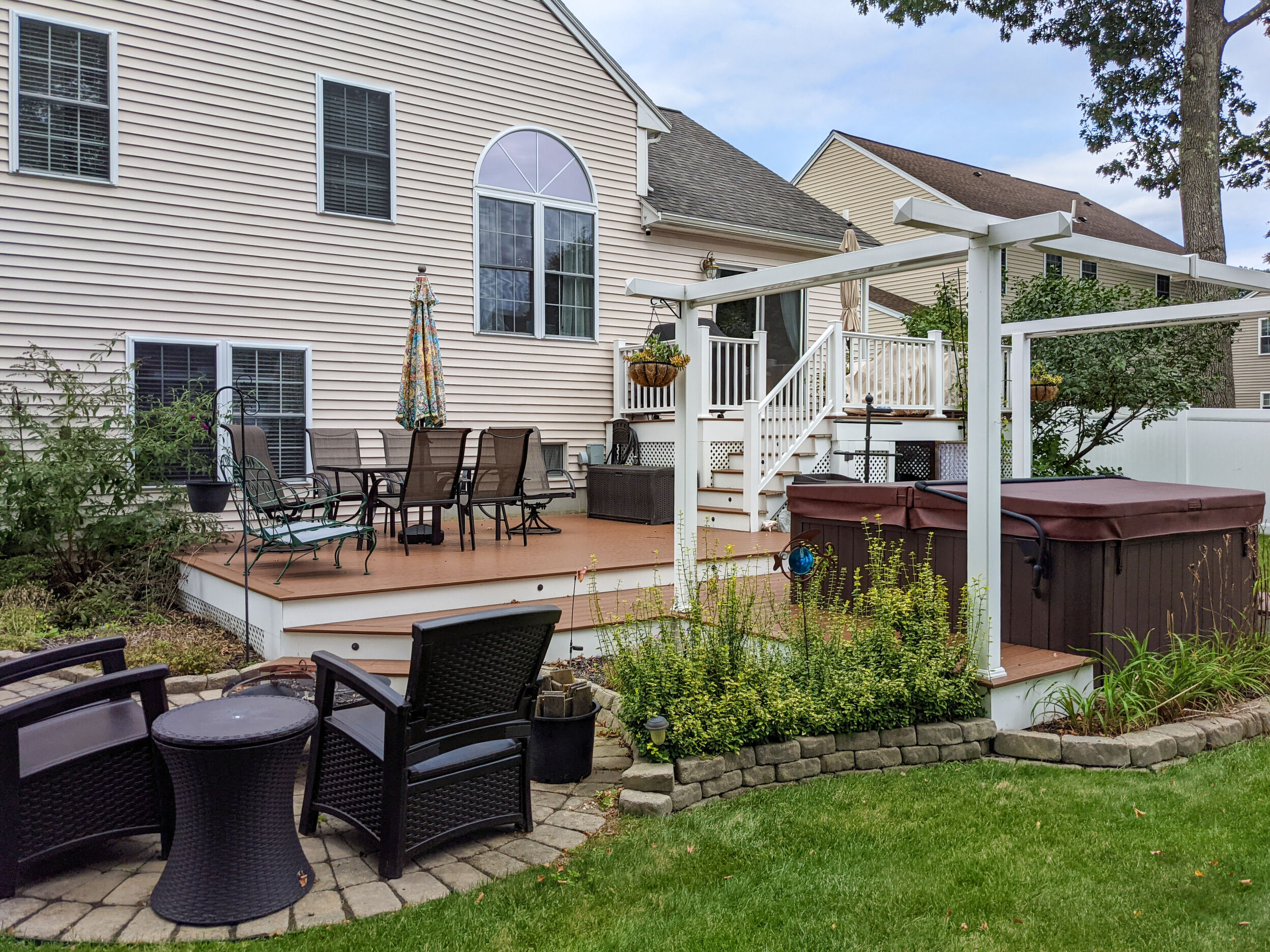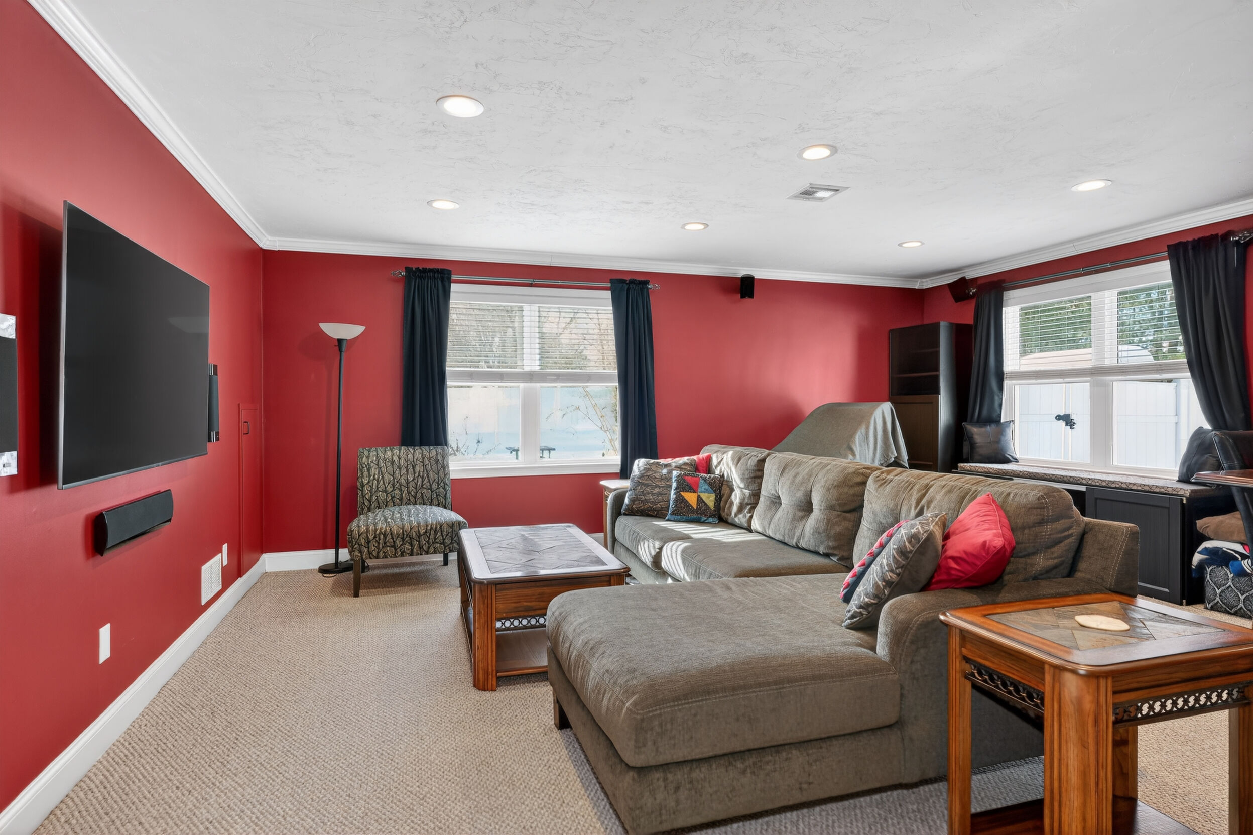 Bright 3/4BR, 2.5BA, Contemporary Colonial w/attached 2 car garage in N. Framingham/Wayland line. Welcoming foyer opens to spacious dining room w/wainscoting & HW floors. Updated Eat-in kitchen w/new cabinets, gas range, microwave, DW, Quartz countertops & backsplash leading to cathedral ceiling LR w/gas fireplace & built-ins. Slider to 2 tier deck w/ natural gas grill steps down to hot tub overlooking large fence enclosed backyard great for BBQ's, children & pets. 2nd Fl laundry. Primary BR w/cathedral ceilings, walk-in closet, remodeled ensuite bath w/double sinks, oversized tiled shower & radiant heat tiled floors. Two additional BR's and full bath complete this floor. Large 4th BR/Family Room & ½ bath. Possible playroom in lower level w/wood floors, speakers & recessed lights. Windows (2022). Gas heat & Central Air (2022). Roof (2017). Sprinkler system. Easy access to Saxonville Beach, shops, restaurants & commuter routes. Won't last! Make your apt today