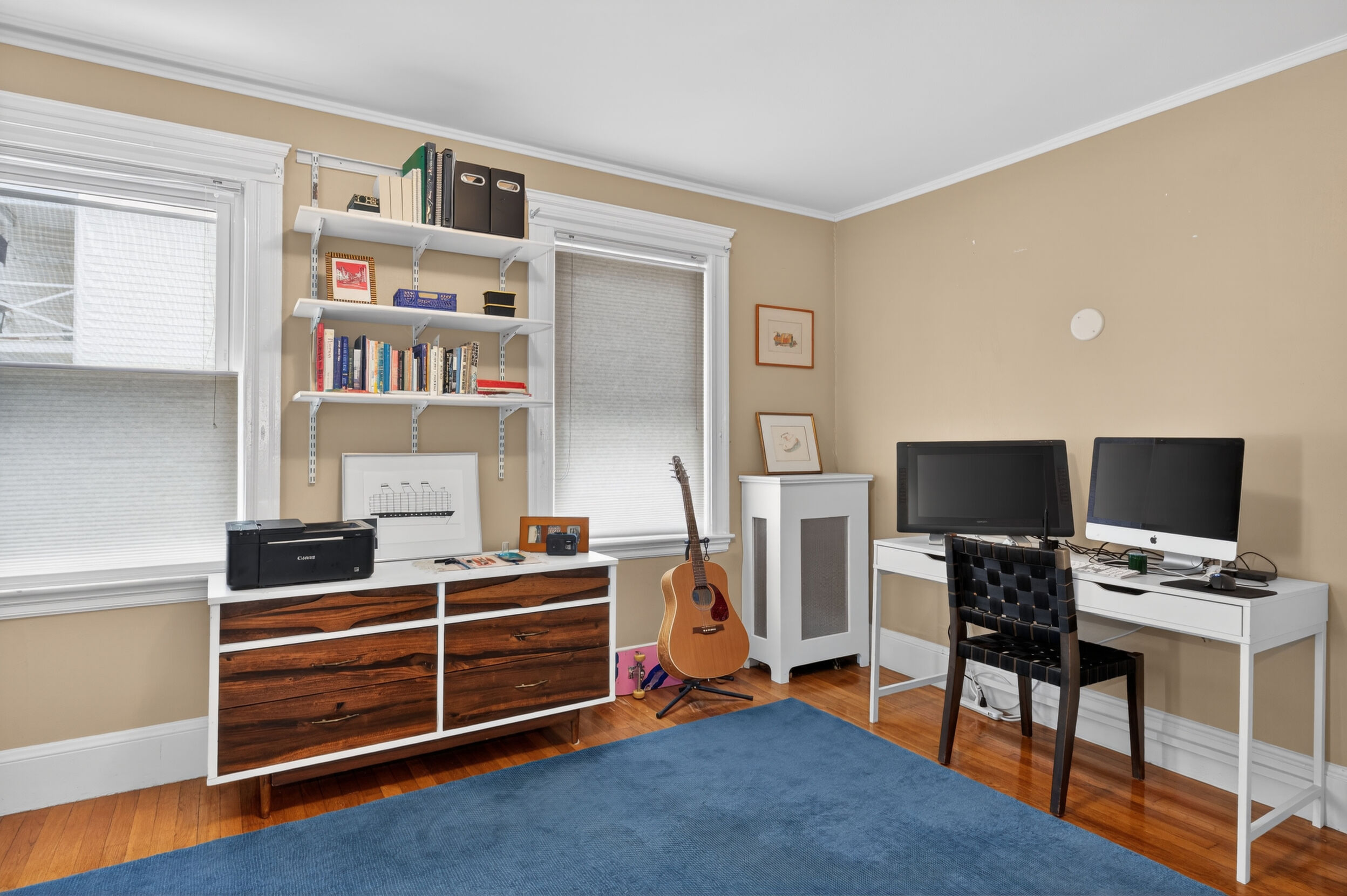 Incredible 2-fam in Cushing Sq.1st floor is 6 rooms - 2 beds/1 bath, reno'd kitchen w granite/stainless/pantry, living room with brick FP and open floor plan into the dining room, 3 season sun porch, a new gas furnace, garage parking and large yard rented by a couple paying $2,800/mo ending in August. The 4 bed, 2 bath unit on floors 2 & 3 has a granite/stainless kitchen with pantry, wood and tiled floors, vinyl windows, room off of the first floor primary for office or nursery, and an additional bedroom. The 3rd floor has 2 more bedrooms with large closets and a 3/4 bath. The basement has laundry and exercise space (not counted in liveable sq footage) and high ceilings. A 2-car garage with one parking spot behind each spot and an additional parking spot to the left of the garage. Sprawling backyard is 2 tiered so each unit can have their own space. Beautifully landscaped and close to public transit, shopping, dining, cafes, grocery store, playgrounds, etc!