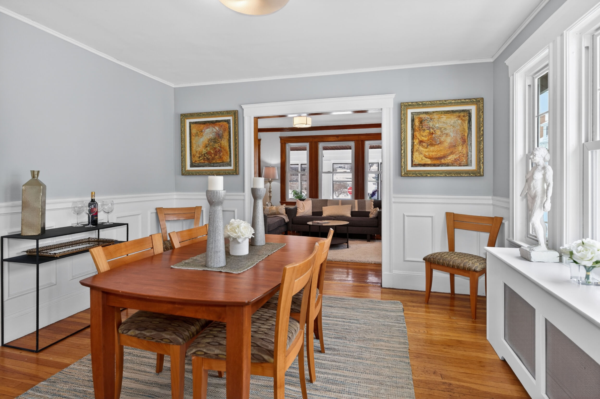 Incredible condo in Cushing Sq.with 4 bed big bedrooms, 2 baths (1 family bath on 2nd floor and Shower on 3rd) with a grand joined fire-placed living and dining room, a granite/stainless kitchen with outdoor balcony and pantry, wonderful south facing sunroom with electric heat, a room off of the first level primary for office or nursery, a full bath with shower and tub, and a additional bedroom. The 3rd floor has 2 more large bedrooms with double door closets and a 3/4 bath with lots of storage. Space on this level for a small office as well. The basement has laundry, exercise space and man-cave area (not counted in liveable sq footage) as well as high ceilings. 2 staircase, 2-car garage with one parking spot behind each spot and an additional parking spot to the left of the garage. Sprawling backyard is 2 tiered so each unit can have their own space. Beautifully landscaped and close to public transit, shopping, dining, cafes, grocery store, playgrounds, etc! Don't miss this one.