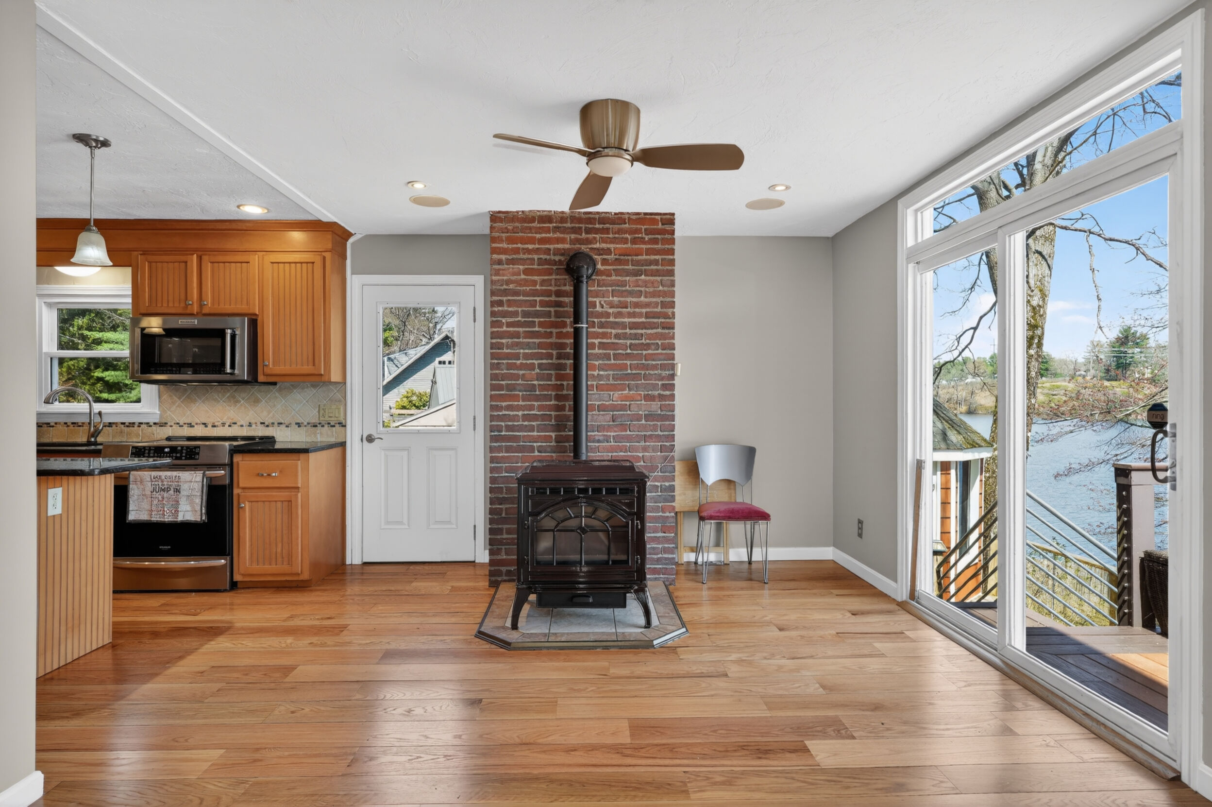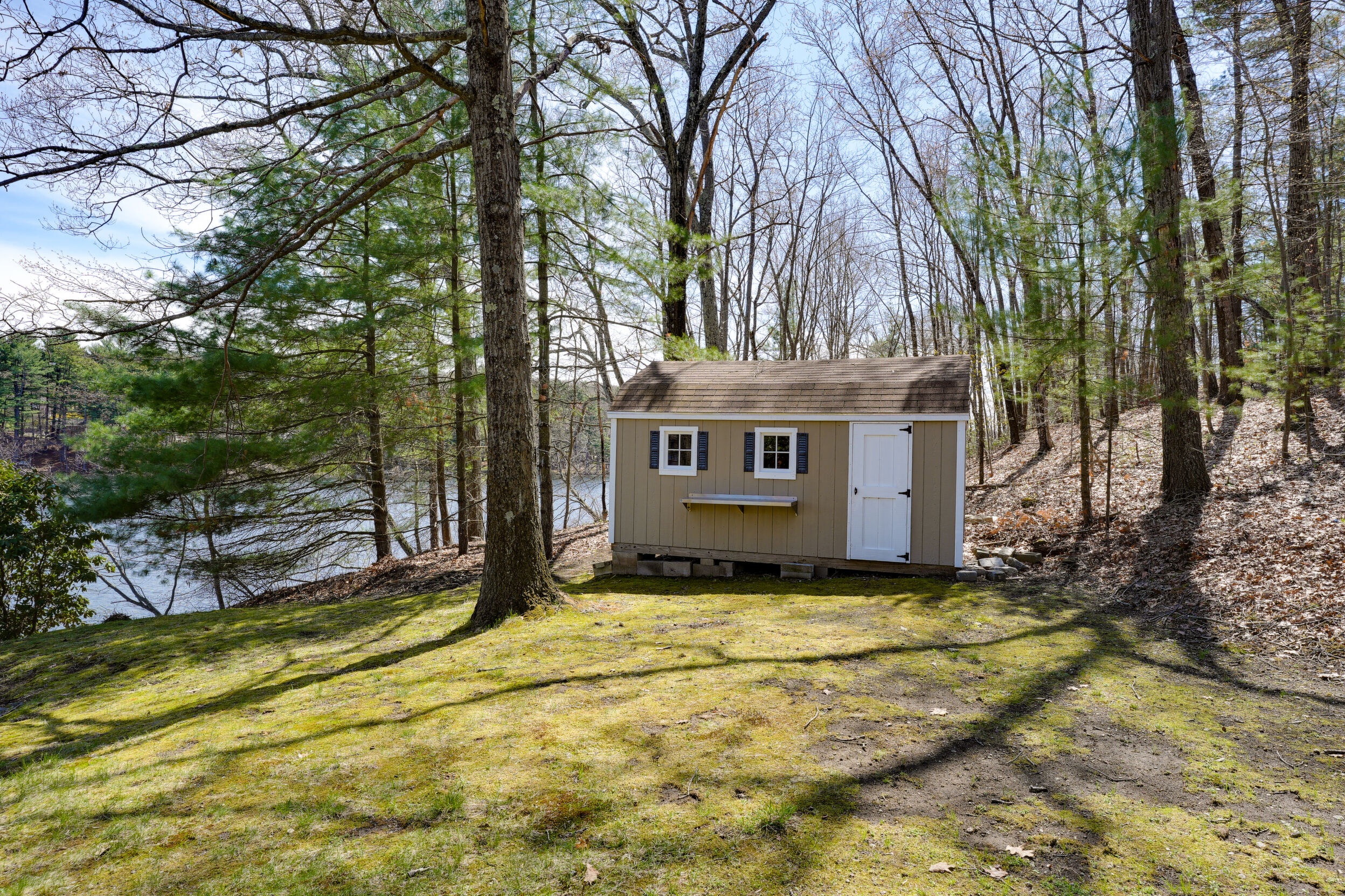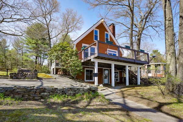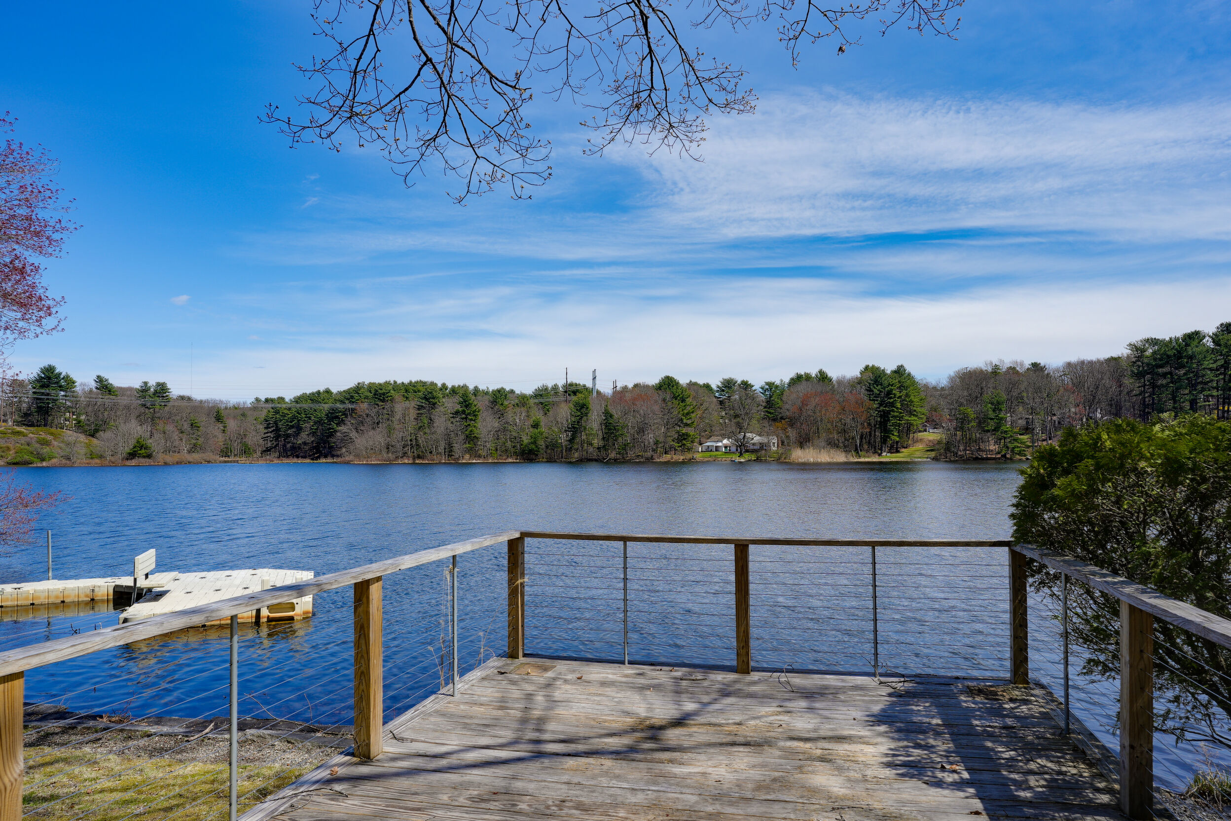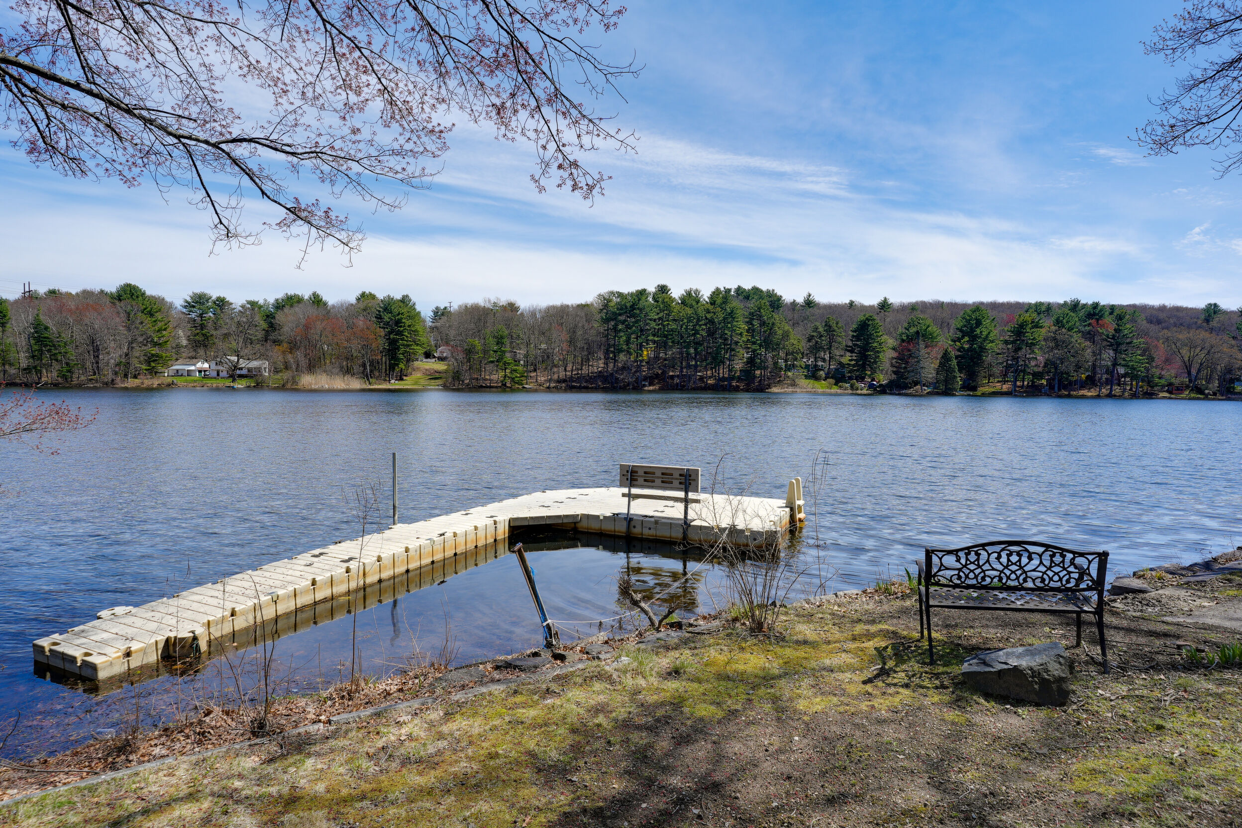 LOCATION, LOCATION, LOCATION! NEWTON POND! Well maintained, Sunny, Waterfront property with open floor plan, has amazing views overlooking the pond and dock. The HUB of this home is the custom cabinet Kitchen with granite counters and stainless steel appliances, open to a spacious Living Room and Dining Room with pellet stove. Additionally, there is a generously sized flex space that can be used as a Primary Bedroom or first floor Office with full bath and double closet. The second floor has a lovely Cathedral Ceiling Main Bedroom with Cork Flooring and 2 large closets. Completing the second level are two more amply sized Bedrooms, and a well appointed half bath. The finished walk out Lower Level is designed as a Multi–Generational living space complete with a 2nd Kitchen, full Bath and wood stove overlooking the tranquil pond setting.Fresh Paint, Gleaming Wood Flooring, an oversized 2 car detached Garage with storage space above, plus a gazebo and two storage sheds.