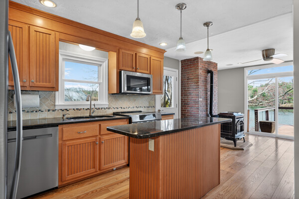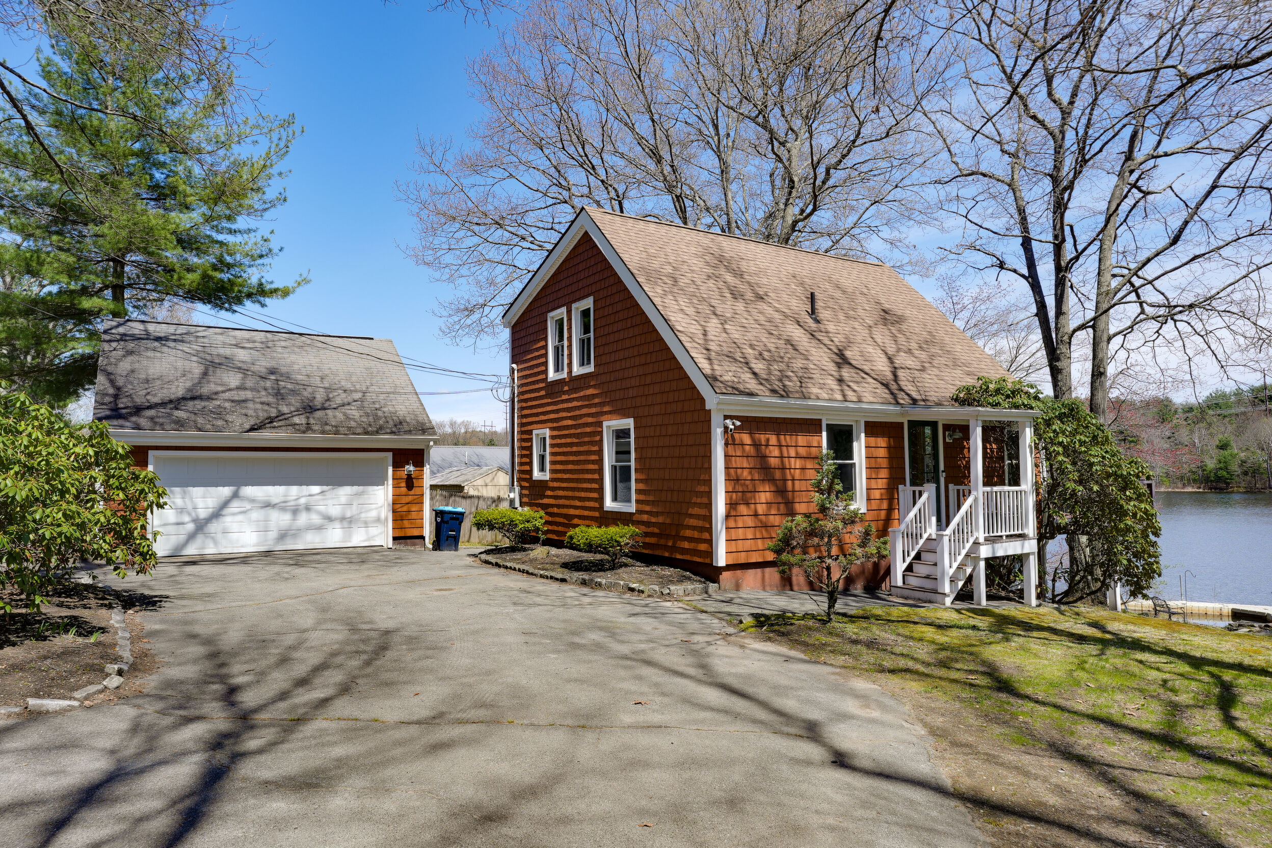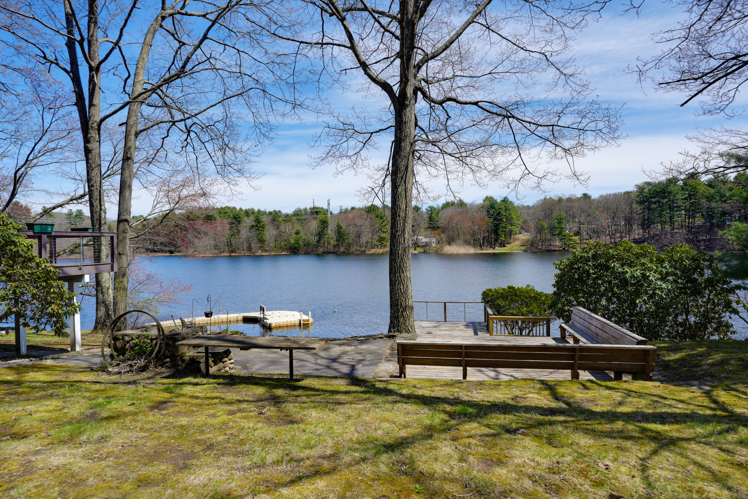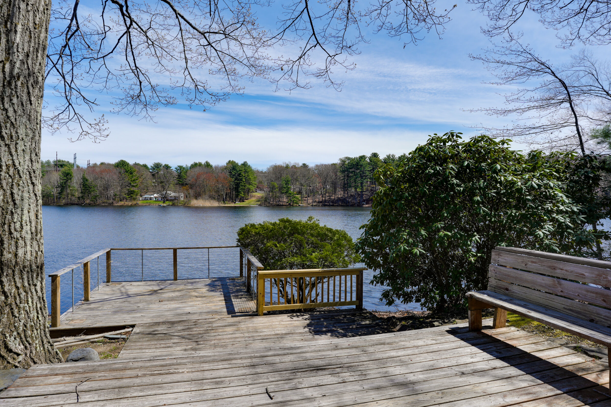 LOCATION, LOCATION, LOCATION! NEWTON POND! Well maintained, Sunny, Waterfront property with open floor plan, has amazing views overlooking the pond and dock. The HUB of this home is the custom cabinet Kitchen with granite counters and stainless steel appliances, open to a spacious Living Room and Dining Room with pellet stove. Additionally, there is a generously sized flex space that can be used as a Primary Bedroom or first floor Office with full bath and double closet. The second floor has a lovely Cathedral Ceiling Main Bedroom with Cork Flooring and 2 large closets. Completing the second level are two more amply sized Bedrooms, and a well appointed half bath. The finished walk out Lower Level is designed as a Multi–Generational living space complete with a 2nd Kitchen, full Bath and wood stove overlooking the tranquil pond setting.Fresh Paint, Gleaming Wood Flooring, an oversized 2 car detached Garage with storage space above, plus a gazebo and two storage sheds.