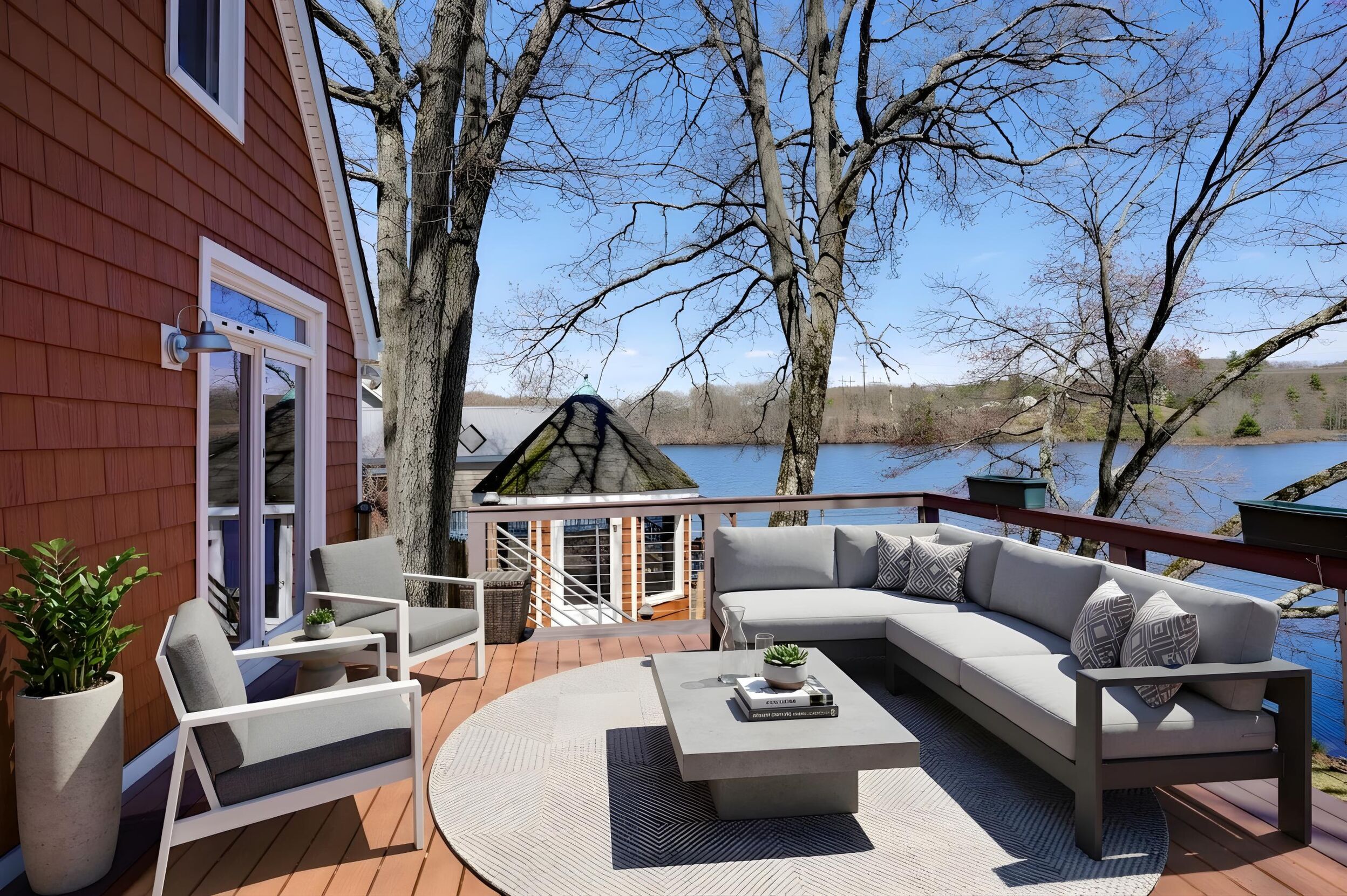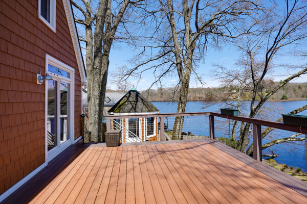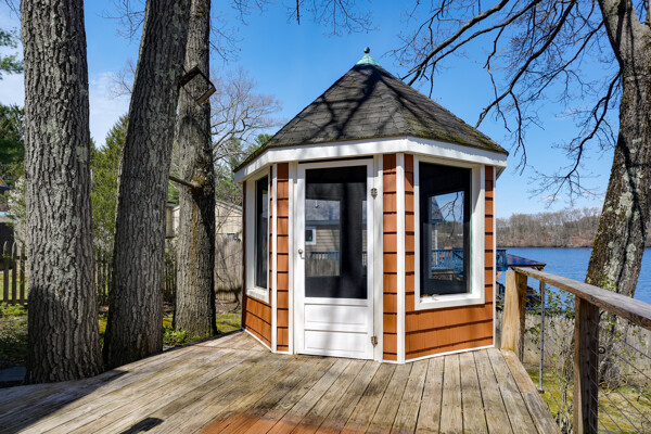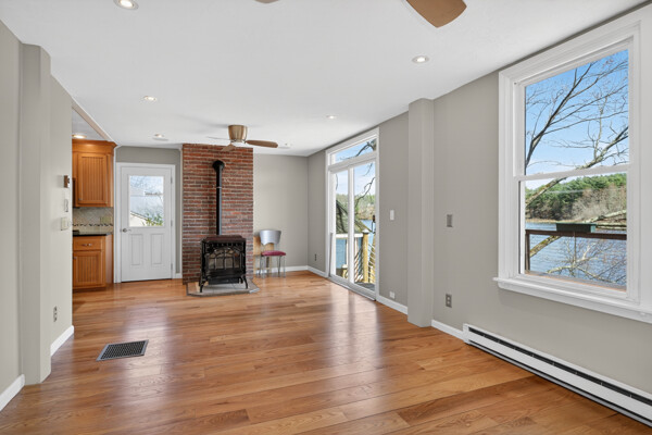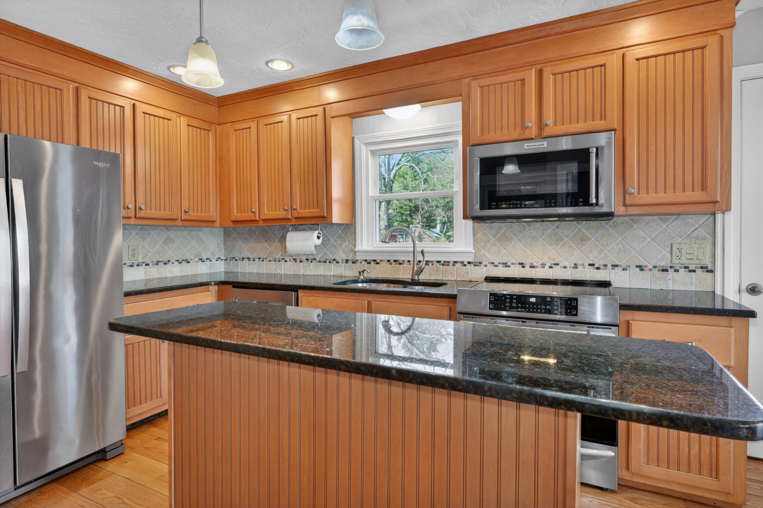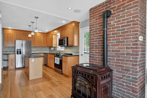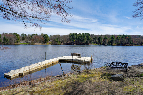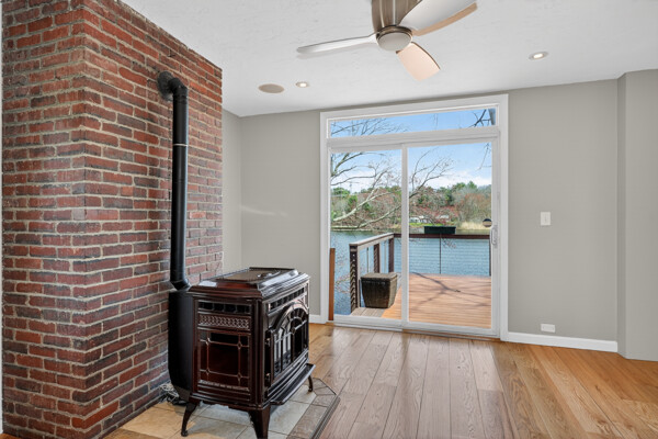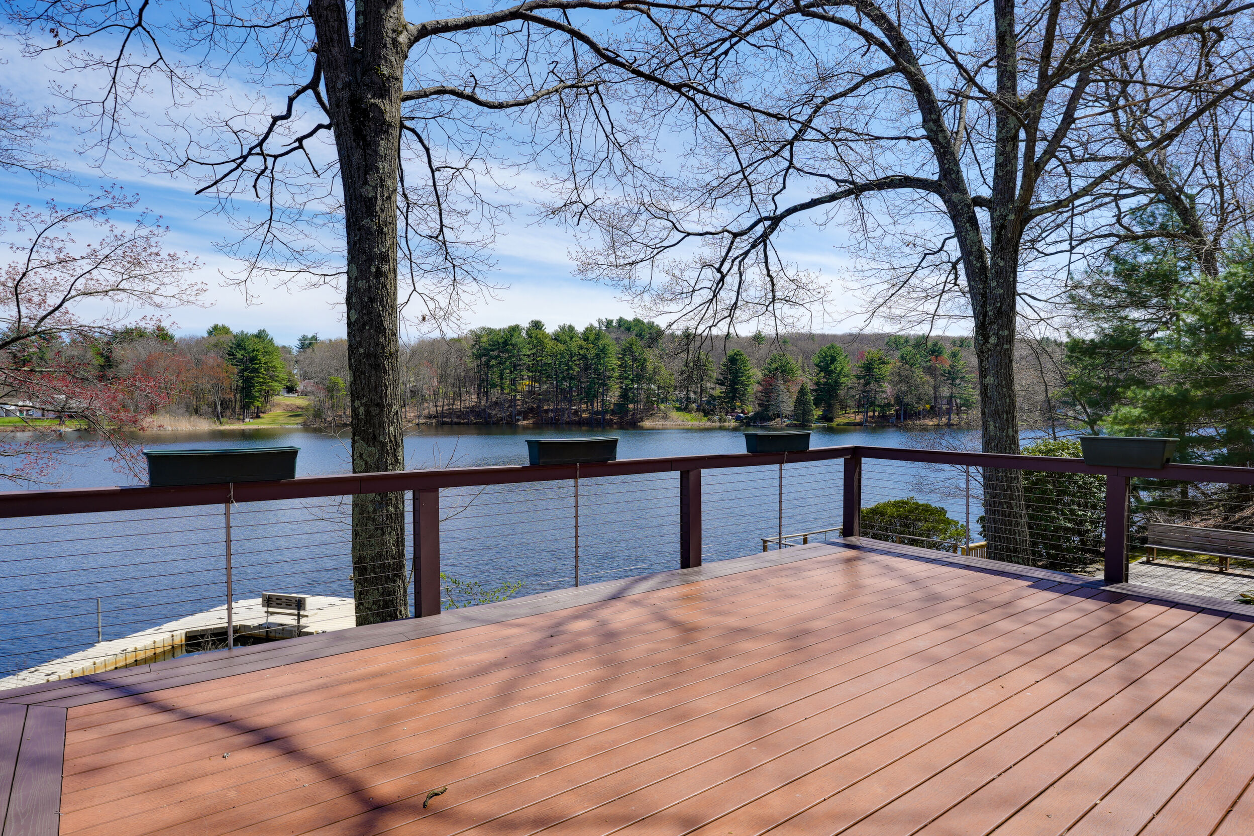 LOCATION, LOCATION, LOCATION! NEWTON POND! Well maintained, Sunny, Waterfront property with open floor plan, has amazing views overlooking the pond and dock. The HUB of this home is the custom cabinet Kitchen with granite counters and stainless steel appliances, open to a spacious Living Room and Dining Room with pellet stove. Additionally, there is a generously sized flex space that can be used as a Primary Bedroom or first floor Office with full bath and double closet. The second floor has a lovely Cathedral Ceiling Main Bedroom with Cork Flooring and 2 large closets. Completing the second level are two more amply sized Bedrooms, and a well appointed half bath. The finished walk out Lower Level is designed as a Multi–Generational living space complete with a 2nd Kitchen, full Bath and wood stove overlooking the tranquil pond setting.Fresh Paint, Gleaming Wood Flooring, an oversized 2 car detached Garage with storage space above, plus a gazebo and two storage sheds.
