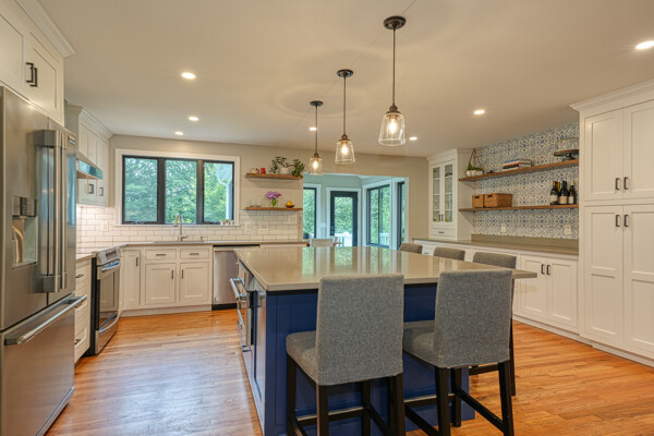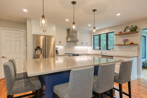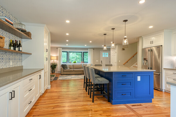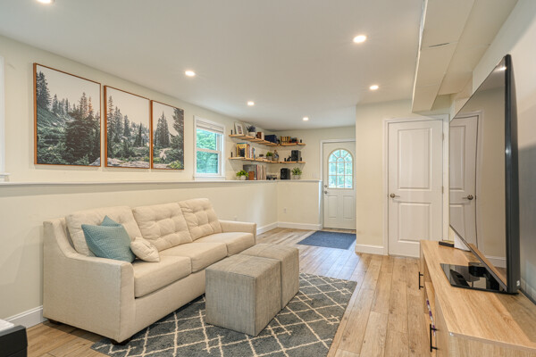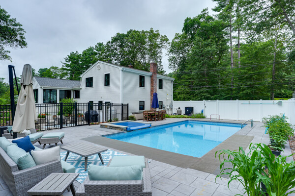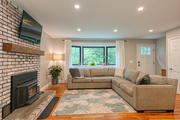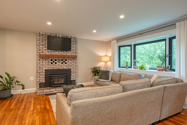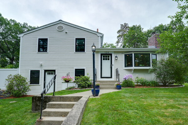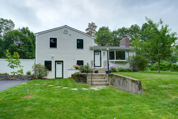 You do not want to miss this stunning split-level with updates galore! Enter the gorgeous, eat-in kitchen w/ quartz counters, oversized island, ss appliances, induction cooktop floating shelves open to living rm w/brick fireplace w/wood insert & bay window. Sun drenched dining rm w/beamed ceiling & wonderful natural light. Gleaming hdwds thru much of the home. Upstairs you will enjoy three spacious bedrooms; primary offers double wide closet w/barn doors. Two other bdrms w/hdwd flrs & great closet space. Beautiful main full bath w/shiplap, tile tub/shower, tile flr, granite vanity. Lower level includes family rm & office space; both w/ LVT flooring. Modern 1/2 bath & convenient mudrm w/amazing built-ins. Walk out takes you to phenomenal fenced yard w/stunning inground, heated, salt water pool & jacuzzi, stone patio w/firepit, shed, wood shed, garden beds & swingset; truly the perfect outdoor space. See attached updates list. Convenient to Rail Trail, 495, shopping & restaurants!