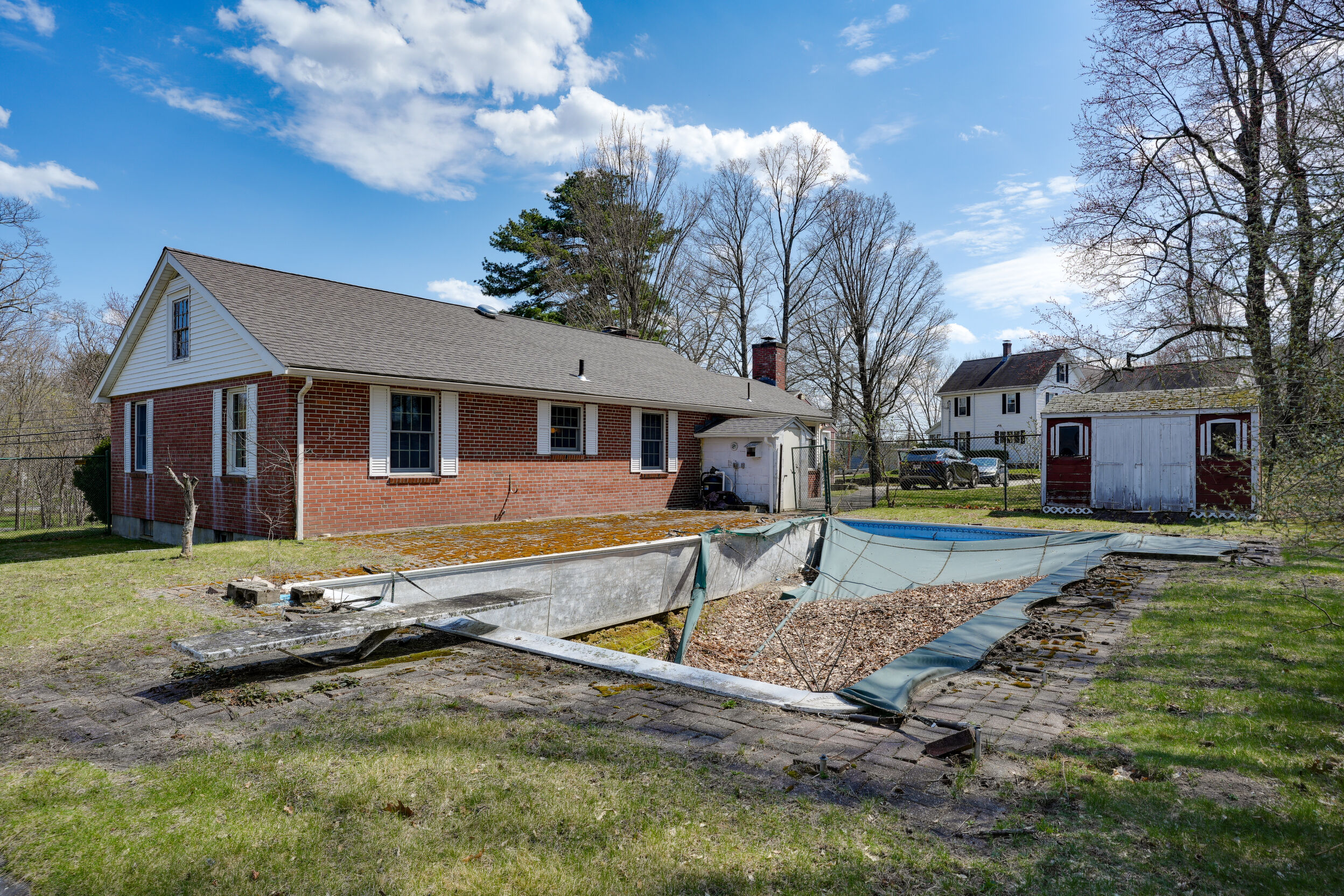 Located in the desirable Saxonville section of Framingham, this all-brick ranch was custom built and lovingly maintained by the sellers’ family and is now offered for the first time in generations. Set on a 19,166 sq ft lot with potential to subdivide into two single-family lots (buyer to do due diligence), the property offers a rare combination of quality and opportunity. The home features 1,473 sq ft with 3 bedrooms, 2 baths, and three fireplaces, along with a walk-up attic and expandable lower level. A 30x28 detached two-car garage with 10’ ceilings, approx 17’ peak, separate utilities, 100 amp electric, and a water connection is ideal for tradespeople, hobbyists, workshop use, storage, or possible ADU conversion. Large, level backyard with mature trees, in-ground pool (needs replacement), and lower level bath requiring replacement. Property needs updating but offers strong potential for builders, investors, or end users.