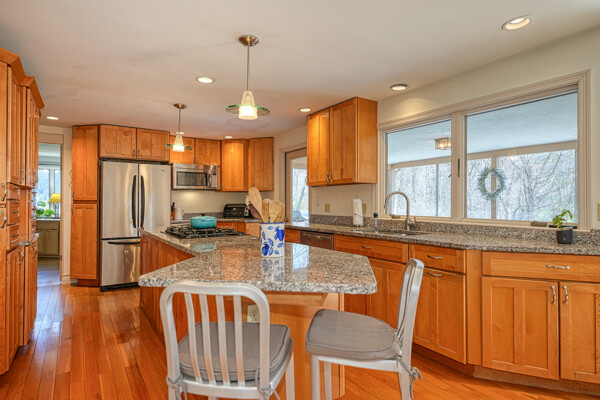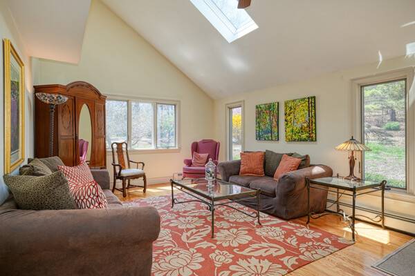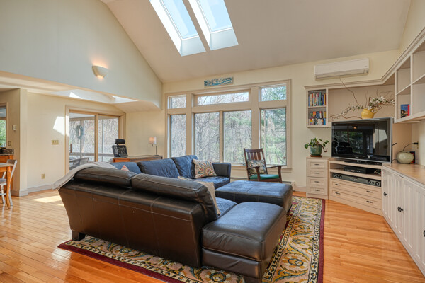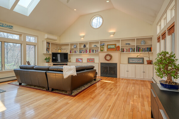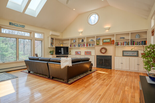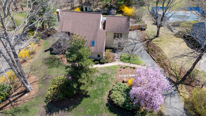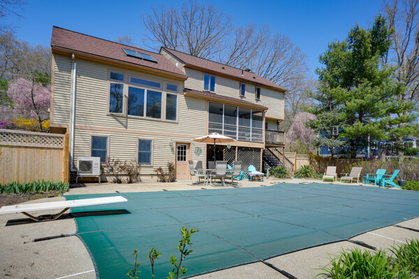 Fantastic opportunity to own a wonderful, contemporary home in the coveted Willow Gate Rise neighborhood. Lovely eat-in kitchen (2004) w/granite counters, ss appliances, oversized island w/range, abundant cabinets. Open to phenomenal cathedral ceiling great room (added 2004) w/gas fireplace, built ins & slider to wonderful screened porch. Gleaming hdwd flrs thru much of home. Vaulted living rm w/skylight, formal dining rm & family rm w/wood fireplace. Convenient 1st flr laundry & 1/2 bath w/tile flr (2024). Upstairs - 3 spacious bedrms including primary en suite w/walk in closet, bath w/marble flr & counter. Amazing lower level w/game & sitting rms w/lam flrs, built-ins, recessed lights & window seat. Office/bonus rm w/LVT & full bath w/tile flr & shower. Gorgeous fenced yard full of flowering plants/trees, in-ground vinyl lined pool w/newer liner & filter, shed; great for storage. 4 mini-splits 2022, boiler/H20 2018, roof/skylights 2016. Property abuts conservation! A must see!
