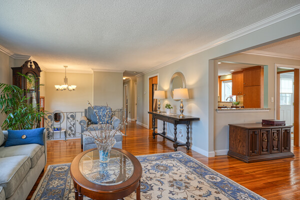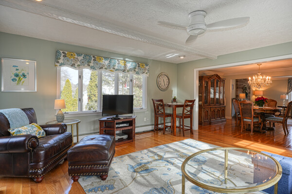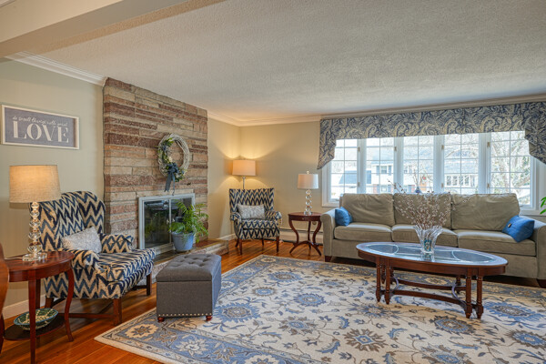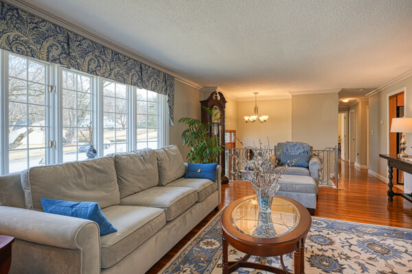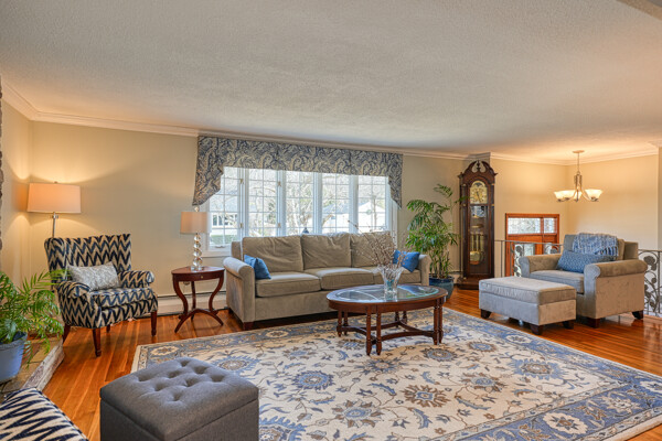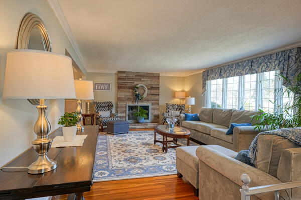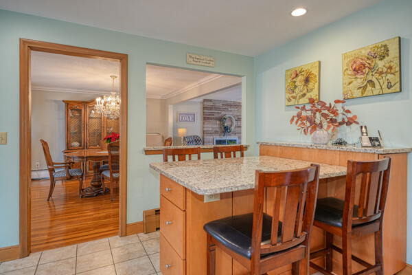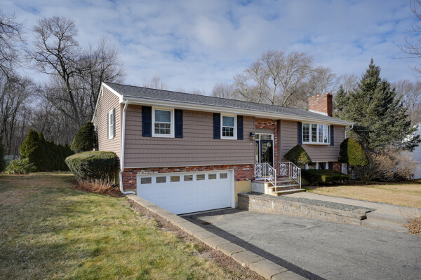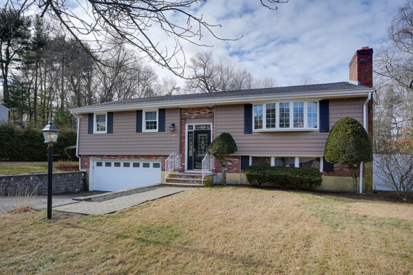 Discover the charm of a meticulously maintained 3-bedroom, 2 bath gem located in a highly sought-after neighborhood in the coveted Fox Hill school district. This oversized & expanded move-in ready split entry home sits on an expansive, nearly half-acre lot, showcasing a picturesque yard. Step into the inviting great room adorned with a cozy fireplace (1 of 3) providing warmth and comfort during New England winters. Host memorable dinners in the formal dining room. The tastefully remodeled kitchen features sleek granite counters and high-end SS appliances, seamlessly blending modern convenience with classic charm. Rich hardwood floors add warmth and character throughout. Upstairs, find 3 bedrooms and a full bath, providing ample space for family and guests. LL offers great flex space w/bath. Expansion potential for in-law or any evolving family needs w/bonus room under the addition. Convenient to town center, Mill Pond, 3rd Ave, the district , Lahey Health & more.
