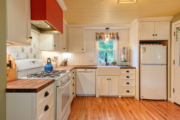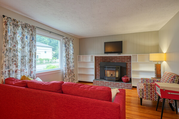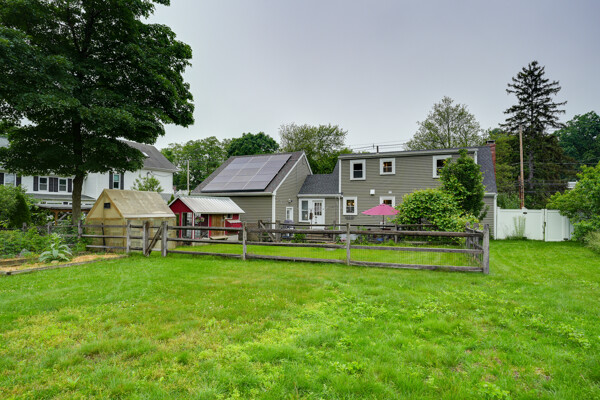 You must see this wonderful dormered Cape in a premium downtown location w/in walking distance of Holliston's schools, Rail Trail, park, restaurants & Lake Winthrop. You will love the stunning open floor plan kitchen/dining room, remodeled 2020 - butcher block counters, apron sink, vent hood, new appliances & breakfast bar. Gleaming hdwd flrs thru much of main level. Living rm w/pellet stove & bay window. Enjoy 1st flr bedroom which could also be used as office/den & modern full bath. Upstairs primary w/double closet & two more bedrms w/ cozy carpet. 2nd flr full bath w/tub/shower. Amazing outside space w/level fenced yard, brick patio 2014, fruit trees, chicken coop, green house & garden beds. Two car garage w/loft. Fantastic updates including H2O heater 2025, furnace 2022, pellet stove 2019, solar panels & roof under them 2016, septic 2014, vinyl siding & bulkhead 2013, windows 2010. Do not miss out on this phenomenal opportunity to own in downtown Holliston!