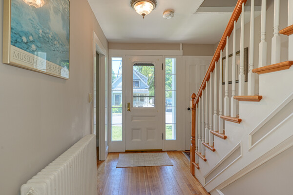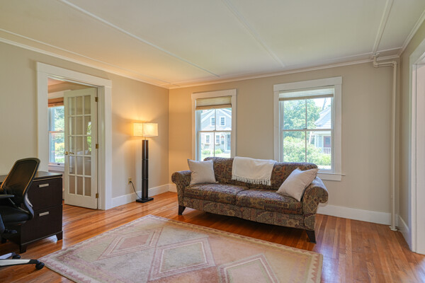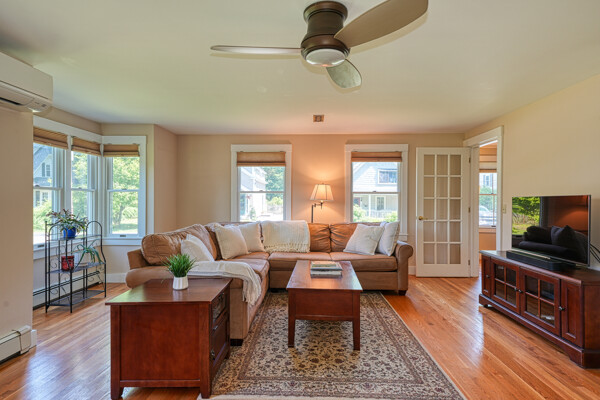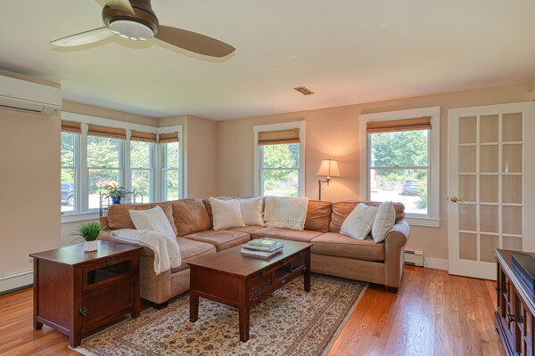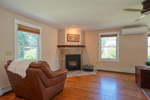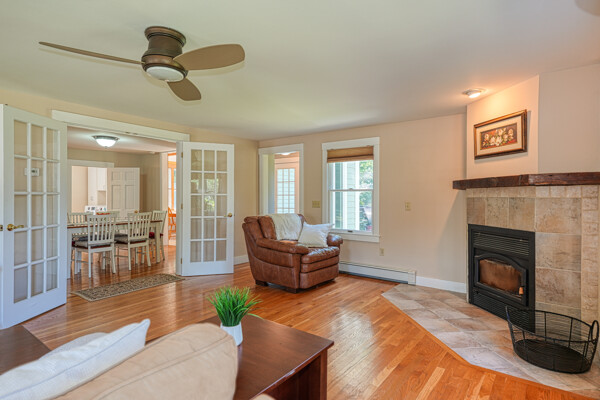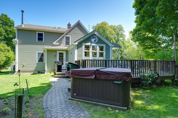 You will not want to miss this pristine Mudville antique in the heart of downtown Holliston. Wonderful beamed ceiling, eat-in kitchen w/tile flr & maple cabinets. Sparkling hdwd flrs through much of the home. Formal dining rm includes lovely built-in hutch. Amazing addition 2007-08 of fantastic family rm w/ wood insert & ceiling fan as well as tiled mudroom & gorgeous deck. Convenient 1st flr laundry, 1/2 bath & living rm. Upstairs is spacious primary en suite (2008) w/custom walk in closet & bath w/double vanity, bath/shower & tile flr. Two more sizeable bedrooms w/closets as well as main bath w/ granite topped vanity, built-in & shower. Outside will be your personal oasis w/ oversized deck, hot tub, stone walkway & plenty of grassy yard to enjoy. Many updates: New septic before closing, exterior paint 2022, mini-splits 2021, boiler/H20 2019, roof 2013 - see full list attached. Walkable to town, Rail Trail, lower schools, playground, Lake Winthrop. Do not miss this gem!