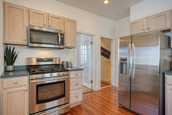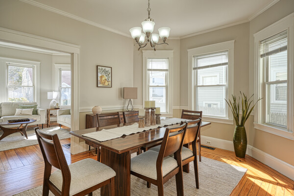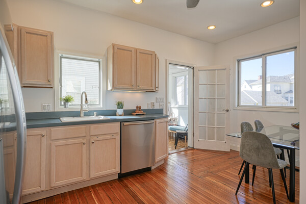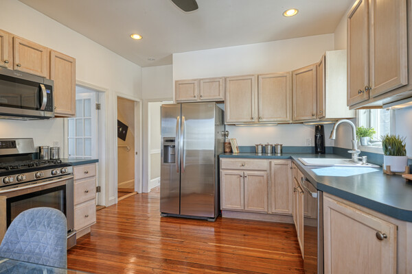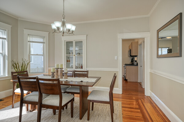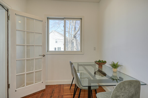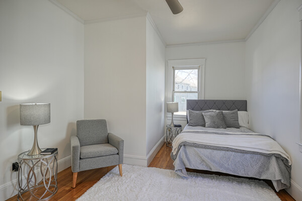 This 3 level condo has a Philadelphia-style primary bed/bath with walk-in closet on the 2nd floor and large family room/gym/office space on the lower level. Coming in from the front porch you have an inviting foyer that looks into a large bay window living room with grand opening to the dining room w/ a built-in china cabinet, another bay window and chair rail. Expansive kitchen w ss appliances, loads of food prep space, crazy storage also has room for dining & is attached to the mudroom off driveway for quick unloading. Our 1st flr also has a br with seating area and 2 door closet as well as a large full bath. The lower level is currently used as a family room, office and work out area w/ closets. The front window could be lowered if you wanted to convert this to a 3rd bedroom. Laundry also on this level. Gas heat and CA. Freshly painted and floors buffed. A block from bus, 3 from train and near great shopping, grocery, salons, park, Senior Ctr, school & food options.