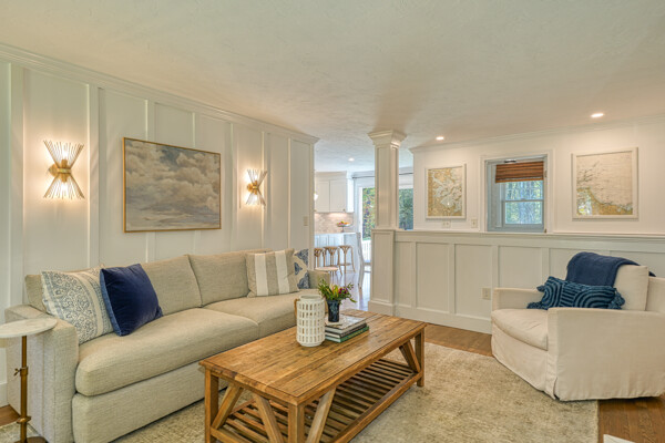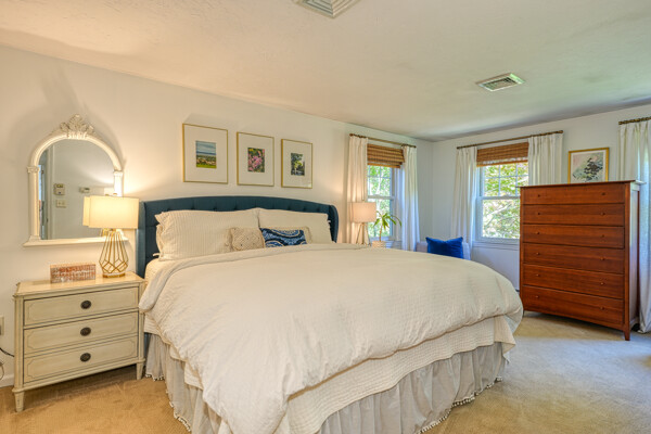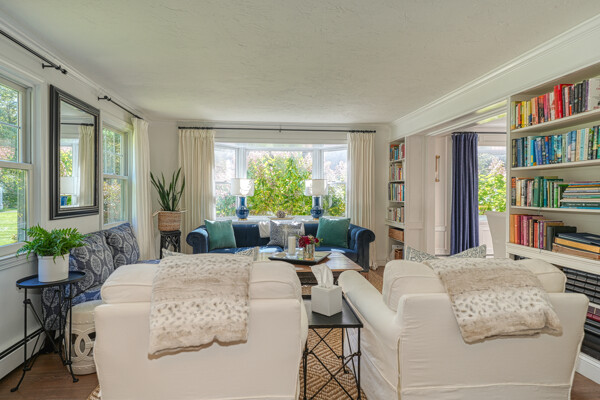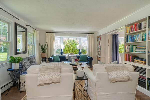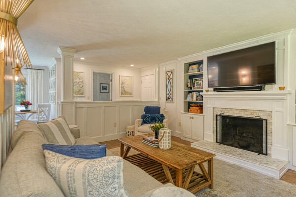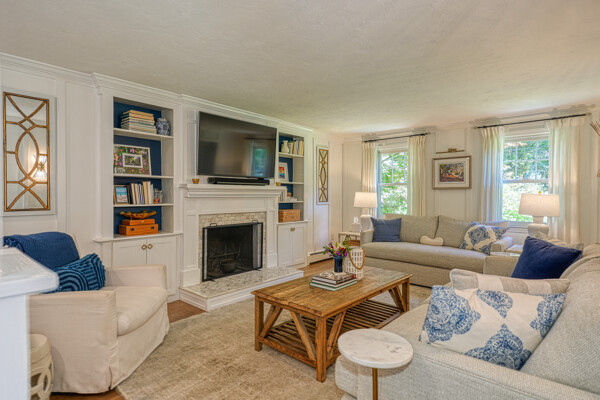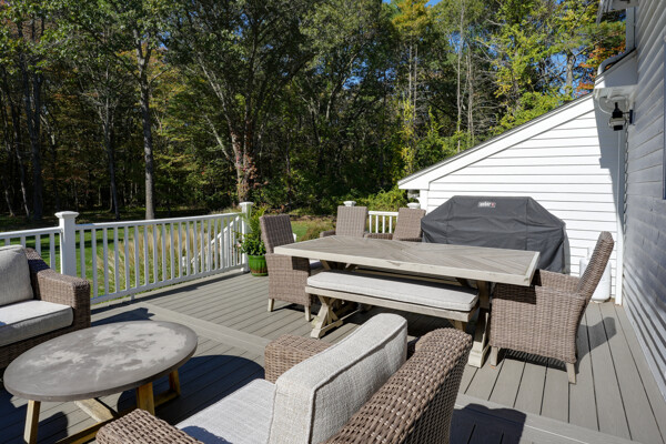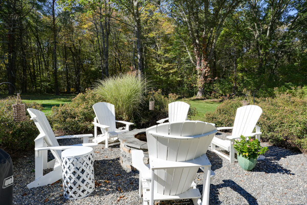 Beautifully updated and meticulously maintained Colonial offering a spacious and functional layout. The remodeled kitchen features sleek quartz countertops, ample cabinetry, and newer stainless steel appliances. Enjoy a sun-filled family room with a cozy fireplace, a gracious living room with custom built-in shelving, and an elegant formal dining room with detailed trim work. Step outside to a generous deck with retractable awning overlooking a serene, landscaped backyard with a built-in fire pit—ideal for outdoor entertaining. The second level boasts a large primary suite with a fully renovated bathroom featuring marble tile, plus three additional well-sized bedrooms and a stylish updated full bath. The finished lower level offers a versatile bonus room with high ceilings, perfect for a home office, gym, or recreation space. Notable updates include windows (2024/2012), roof and gutters (2021), and furnace and hot water tank (2020). Truly move-in ready!