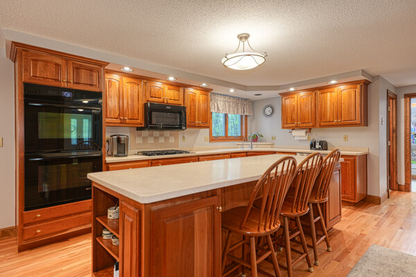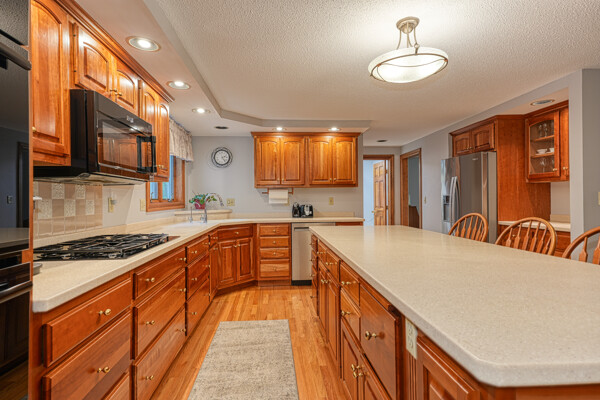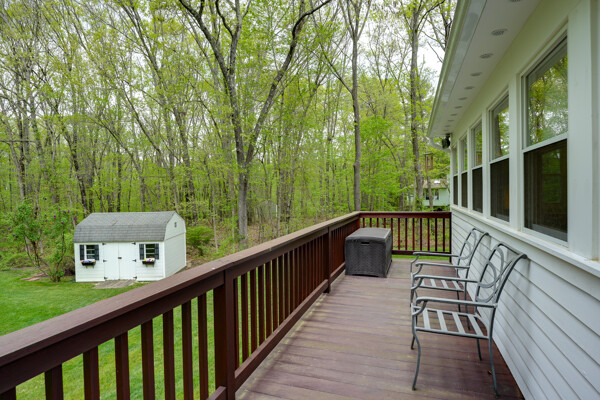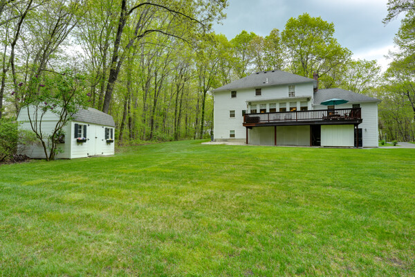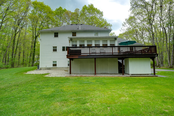Pride in ownership shows in this beautiful home in desirable Scribner Hill Estates. The eat in kitchen features a large island, double JennAir ovens and a gas cooktop. Sliders open to the sunroom with newer windows and a mahogany deck that wraps around overlooking the private backyard with custom fire pit. The 22x20 family room has cathedral ceilings, hardwood floor and a wood burning fireplace with a new liner. Hardwood floors in the living room and dining room, a half bath and laundry room with cabinets and shelving complete the first floor. Upstairs the primary bedroom has wood floors and an en-suite bath. There are 3 additional generous size bedrooms, a full bath with tiled floor, double vanity and linen closet. Add'l 500 sq ft in lower level with full size window and new carpet. Two brand new heating and AC units, a whole house generator, 2 sheds, a custom fire pit and fully irrigated lawn.