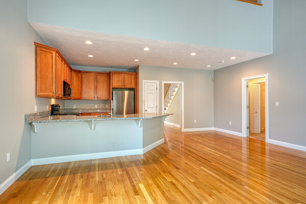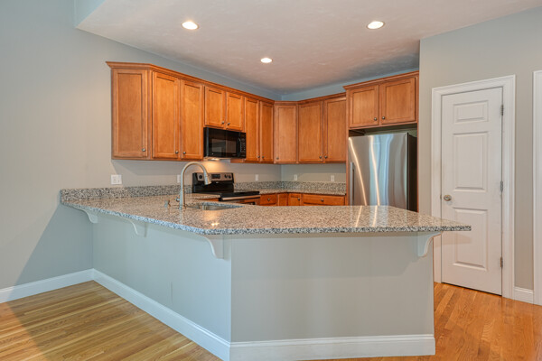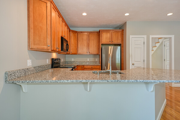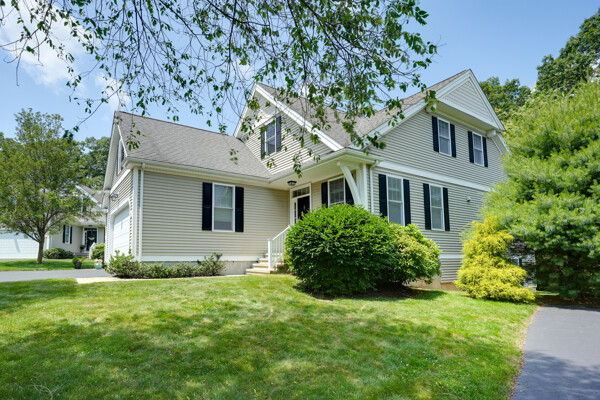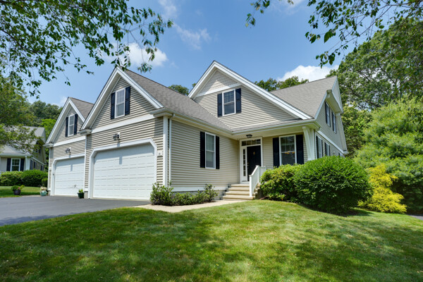 This lovely 55+ townhouse in Balancing Rock Village is ready for a new owner. Welcoming eat-in kitchen with new granite counters 2025, ss appliances, pantry and breakfast bar open to vaulted ceiling living room with gas fireplace and slider out to fantastic wood deck. Separate formal dining room at front of the unit and hardwood floors through much of main level. First floor primary en suite with cathedral ceiling and large walk in closet. Primary bath includes double vanity with Corian counter, tile floor, double wide shower and linen closet. Convenient first floor laundry and powder room. Upstairs offers second bedroom with cozy carpet, closet and storage space as well as bonus loft space. Upstairs full bathroom with tile floor, Corian counter vanity and shower/bath. Great opportunity for expansion and/or storage in the lower level as well as two car garage. Water heater 2023 and new interior paint through much of unit 2025. Convenient to shopping, restaurants and 495!