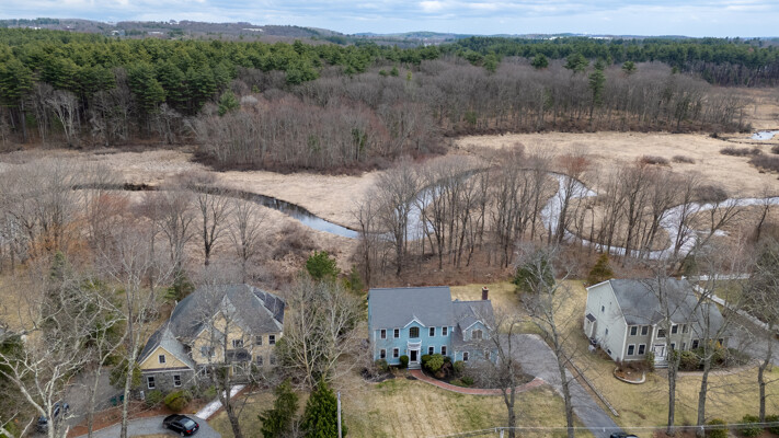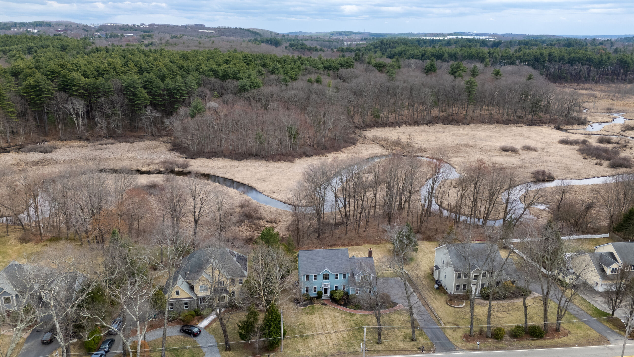 This beautifully maintained home features hardwood flooring throughout & a spacious, well-designed layout ideal for today’s lifestyle. The custom eat-in cherry kitchen with granite countertops is both stylish & functional. The main level offers an inviting family room with a marble fireplace, solid cherry mantel, & custom built-ins, along with a formal dining room & formal living room. A first-floor office provides the perfect space for working from home. Upstairs, you’ll find three generously sized bedrooms plus a large bonus room over the garage, offering flexible space for a playroom, media room, or guest suite. The finished lower level game room adds additional living space, featuring separate wine cellar, and a striking stone fireplace with bluestone mantel and hearth. New roof 2025, electric vehicle charger, manual transfer switch w/generator hookup, new hot water heater. Enjoy the outdoors in a private setting w/scenic views overlooking the Assabet River!