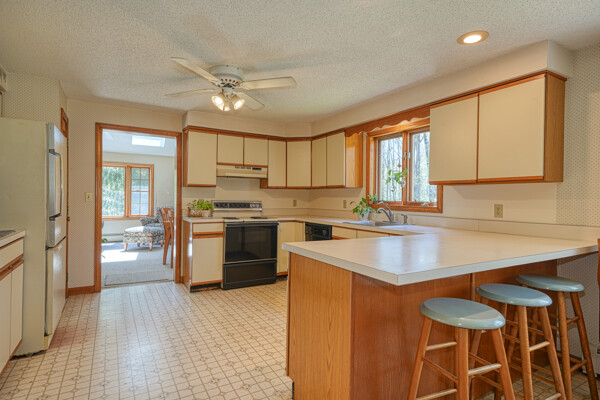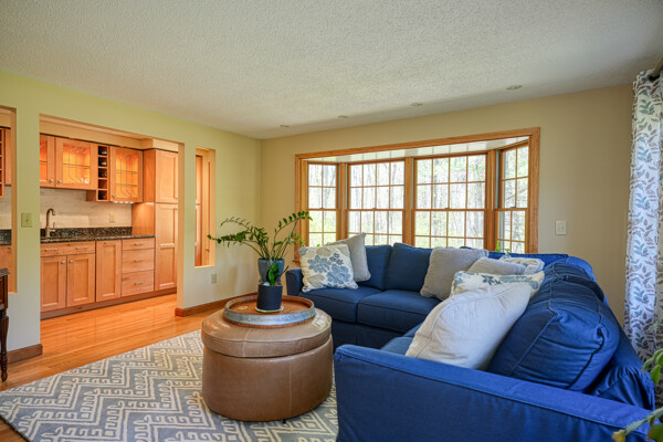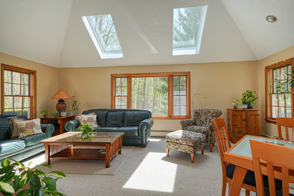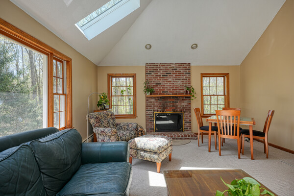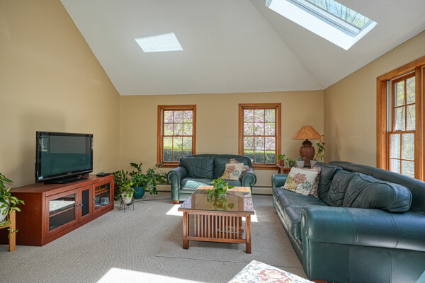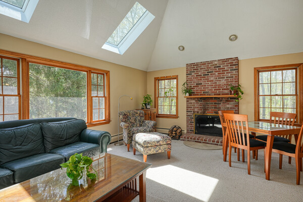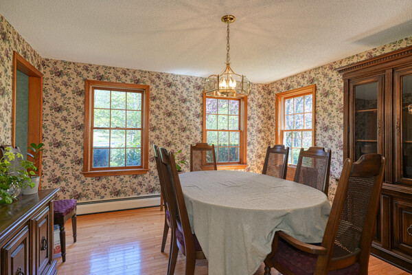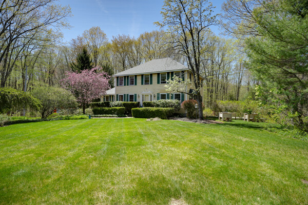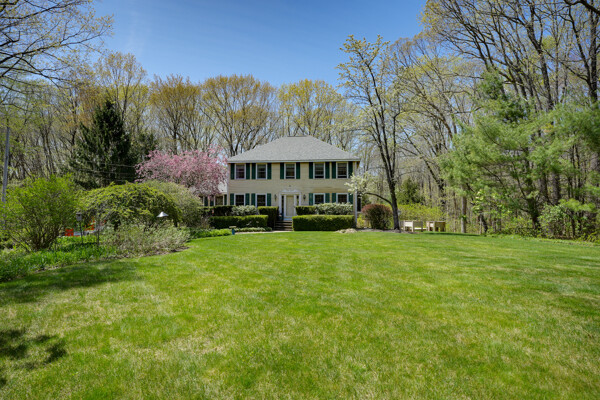 Nestled on a culdesac in one of Tyngsboro's most desirable neighborhoods sits this hip-roof 4 bedroom colonial home. The large bright family room has cathedral ceilings and a wood burning fireplace. The eat in kitchen has 2 closets and a big window overlooking the private back yard and conservation land.The living room has a wet bar area, hardwood floors, recessed lighting, bay window and is perfect for entertaining! The dining room has hardwood floors and a cozy atmosphere. The half bath and laundry complete the first floor. The second floor has all new hardwood floors and was just freshly painted. There are four good size bedrooms and a primary bath with shower stall, and a full bath with a tub. This home faces east and has a wonderful amount of natural lighting. The grounds have a full irrigation system, a walk out basement and a 2 car garage under the family room.Brand new roof and skylights, a Buderus FHW heating system with 2 zones and perennial gardens and flowering trees.