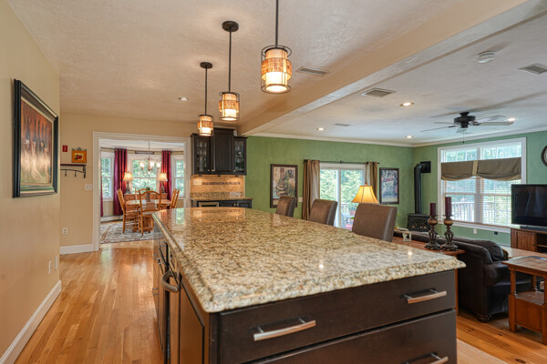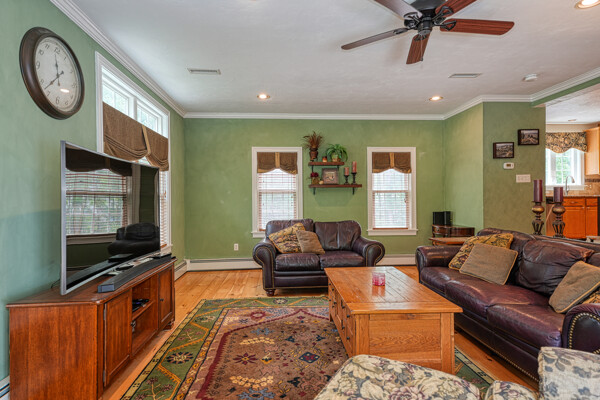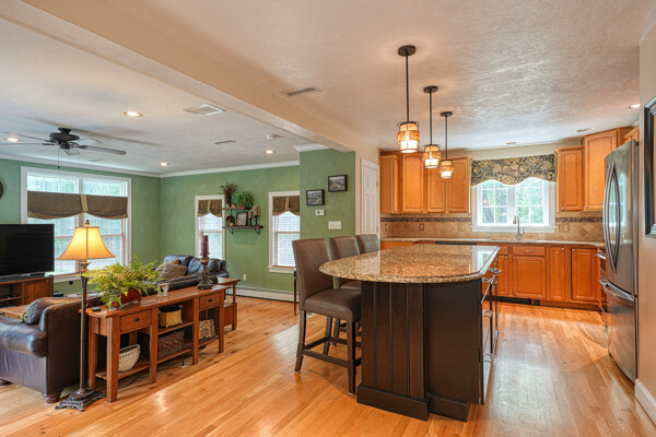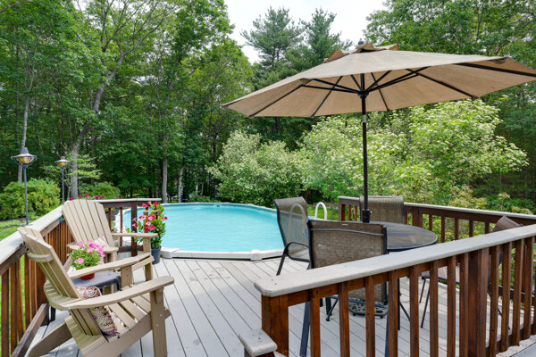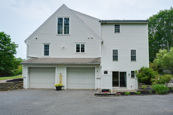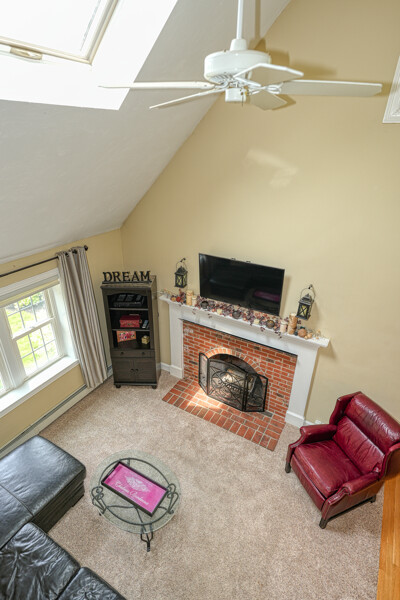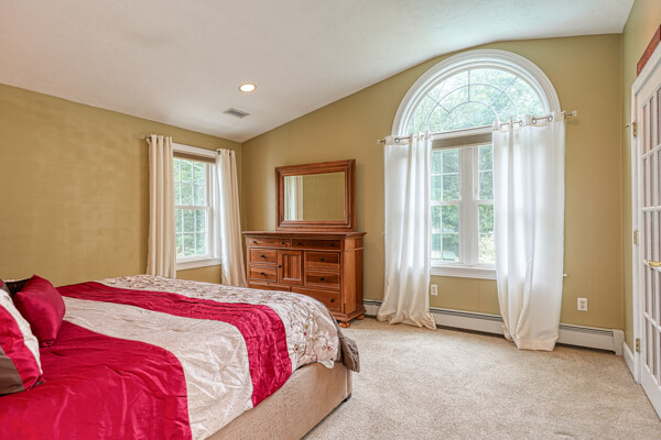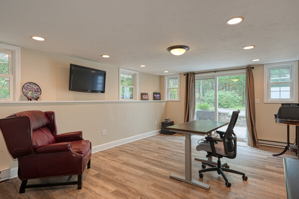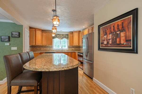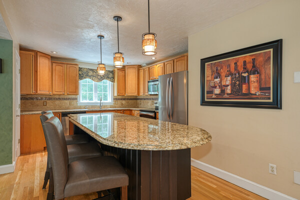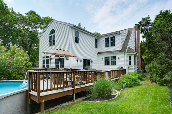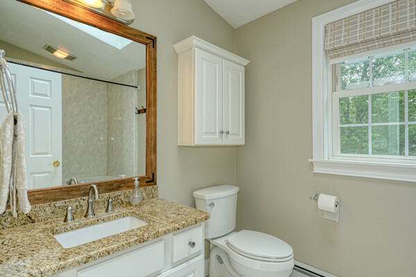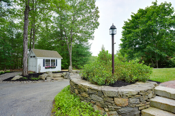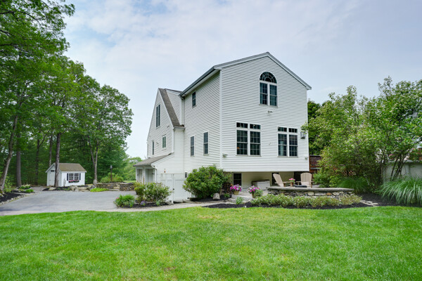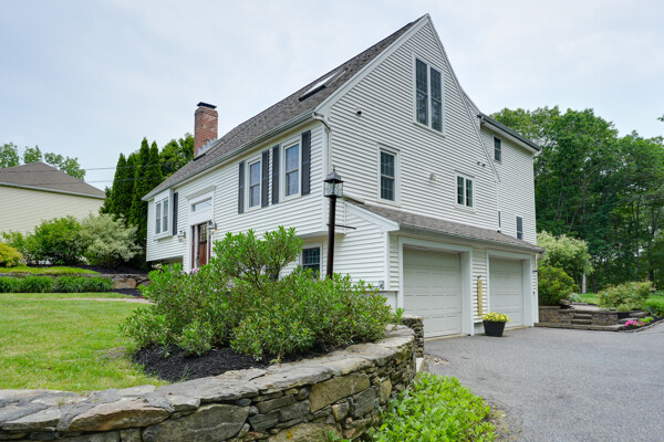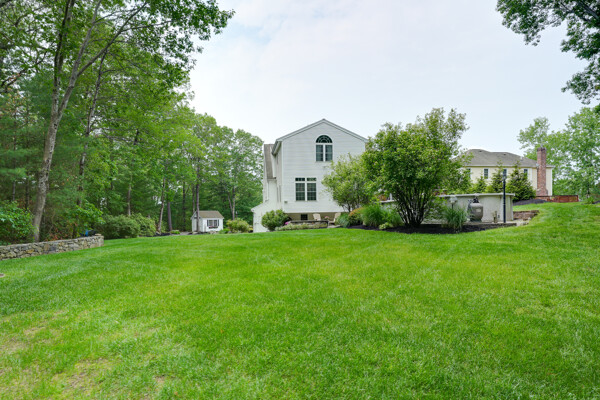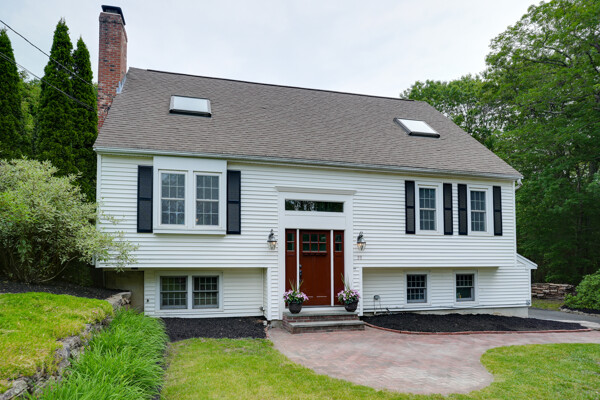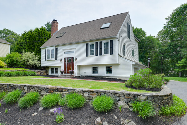 Welcome to your hilltop paradise, a beautiful 1.2+ acre property featuring manicured lawns, mature plantings, & decorative stone walls! This spacious raised Cape offers three levels of well-designed living space, including 4 bedrooms and 3 full bathrooms. Thoughtful renovations by the current owners have transformed this home, highlights include: stunning sunken family room w/dry bar and gas(propane)stove, primary suite w/ ensuite bath, spa like 2nd bathroom featuring double vanity & large walk-in shower, a convenient 2nd floor laundry, & a versatile LL office w/ exterior entrance — perfect for working from home. Main floor features a vaulted-ceiling living room w/fireplace, open to formal dining area & updated kitchen w/center island -all with gleaming hardwood floors. Main level guest bedroom & full bath - perfect setup for visitors or in-laws. Enjoy summers w/ your large deck, pool, great backyard, outdoor shower, & Reeds Ferry shed! Close to Wegmans, shopping, commuter rail,& RT9