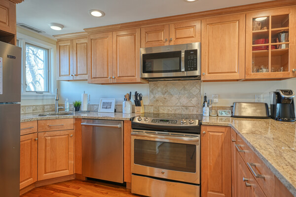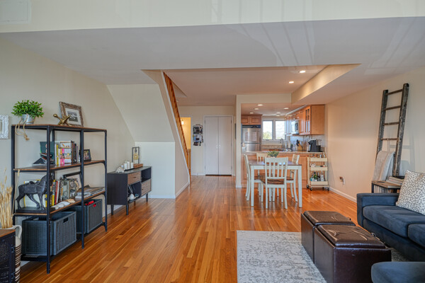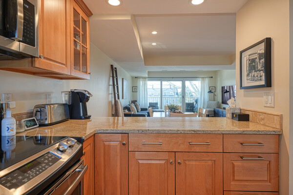The one you have been waiting for! Extensively renovated 2 bedroom, 1.5 bath Penthouse featuring views of the ocean and harbor at Glover Landing. Fully remodeled deluxe kitchen with stainless appliances and granite counters. Open concept living and dining areas which leads to large sliding glass doors to balcony. Hardwood and tiled floors. Updated baths with granite counter upstairs, pedestal sink down. Primary bedroom has built-in bookcases and closet built-ins. Newer gas furnace, air conditioning. Onsite management. Heat and hot water included! Private beach and dock, enjoy direct access to the renowned Marblehead Harbor. Walking distance to downtown. True nirvana in Marblehead.